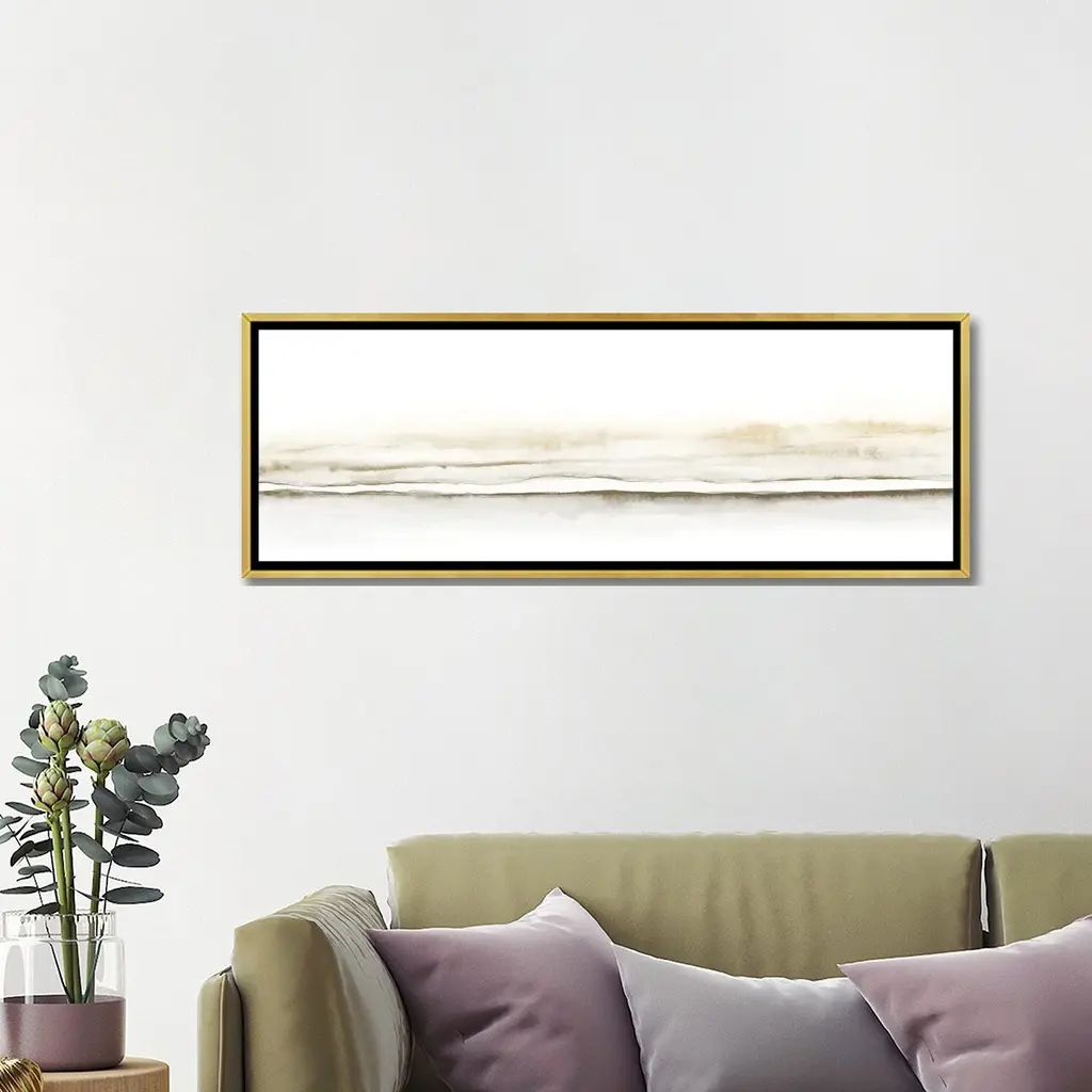 Icanvas "Watercolor Landscape Xiv - Panoramic" By Nouveau Prints Framed Canvas Print - 16x48 - Gold