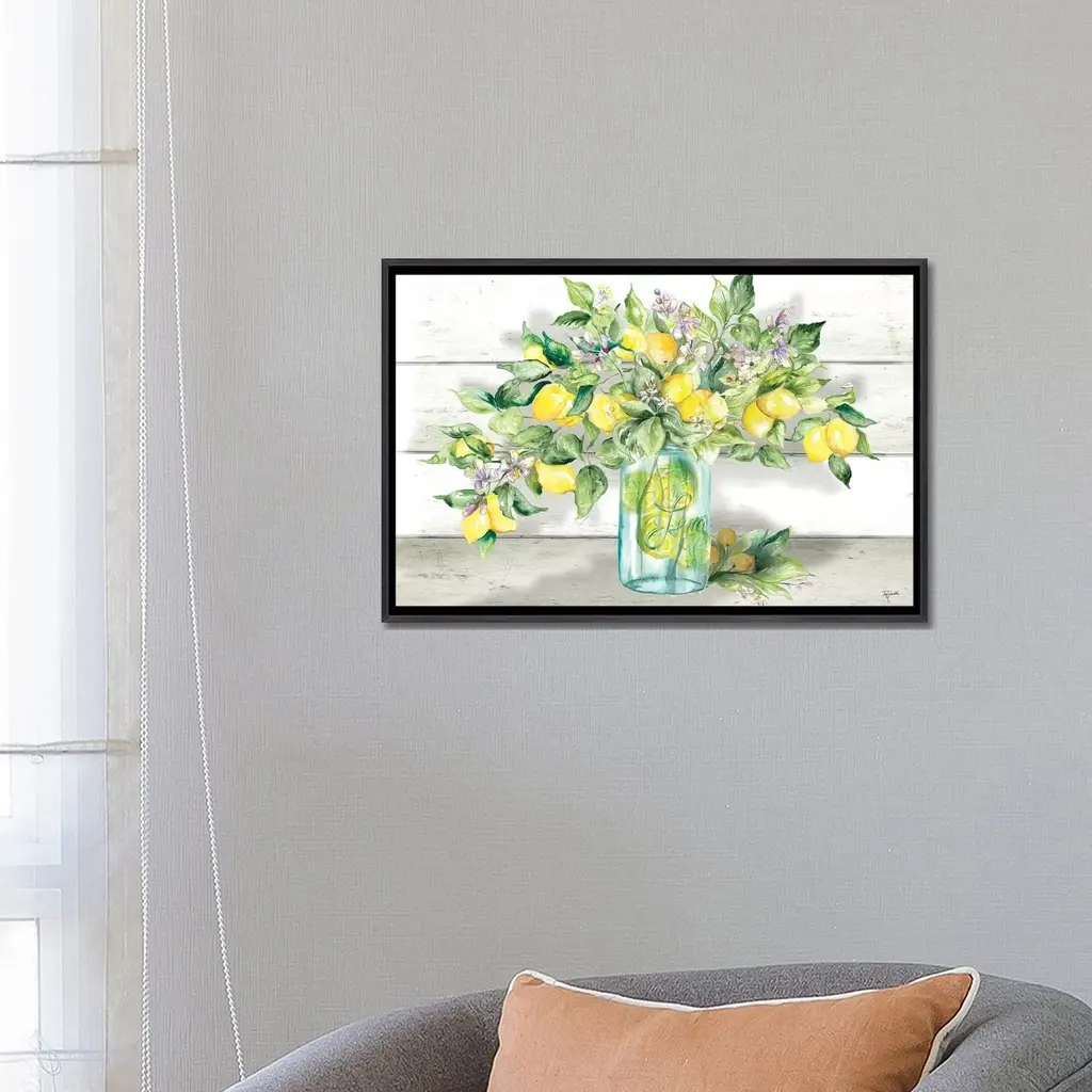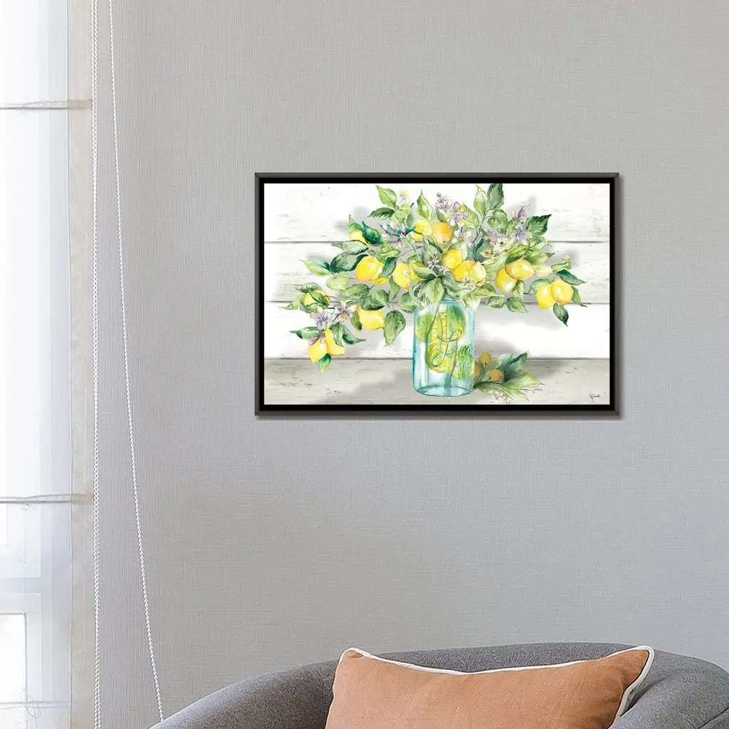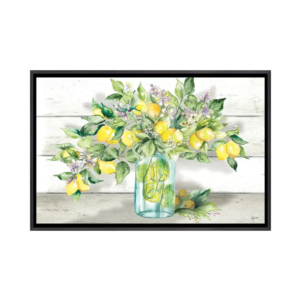 Icanvas "Watercolor Lemons In Mason Jar Landscape" By Tre Sorelle Studios Framed - Charcoal - 26x40