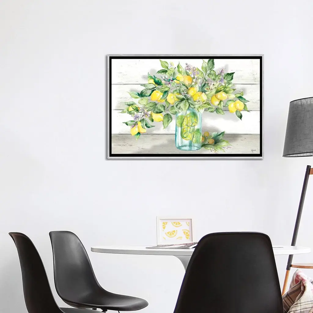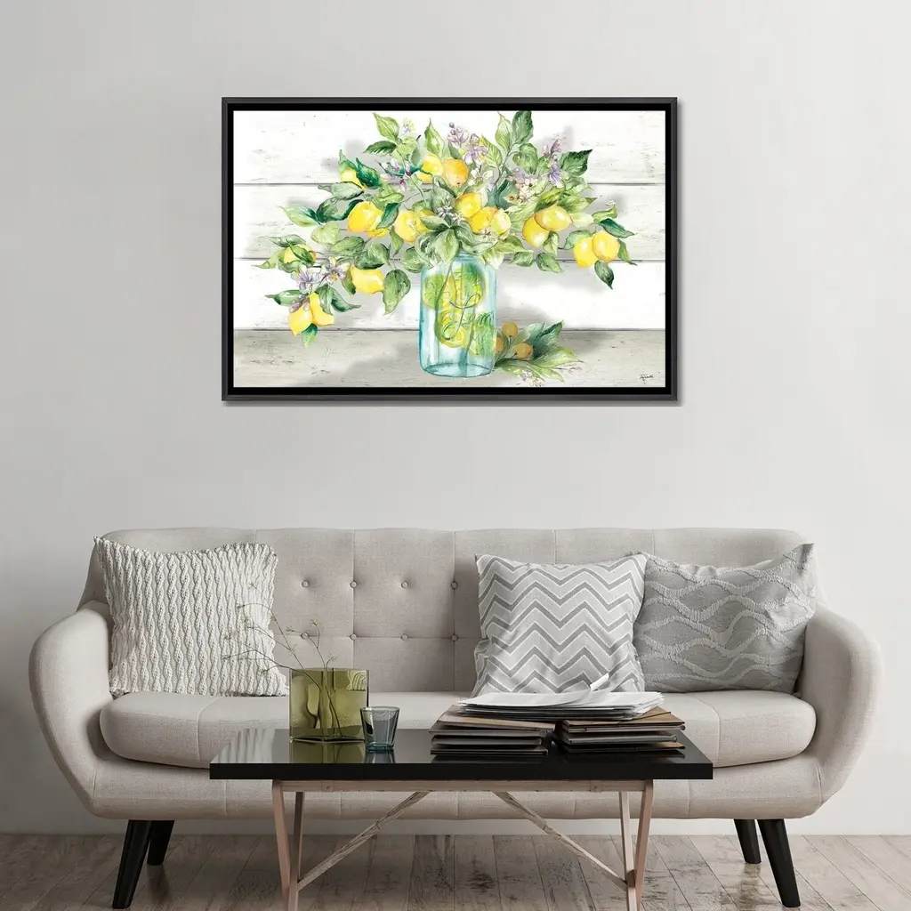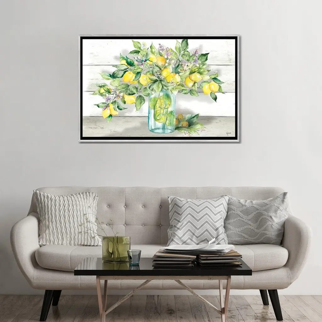 Icanvas "Watercolor Lemons In Mason Jar Landscape" By Tre Sorelle Studios Framed - Charcoal - 26x40