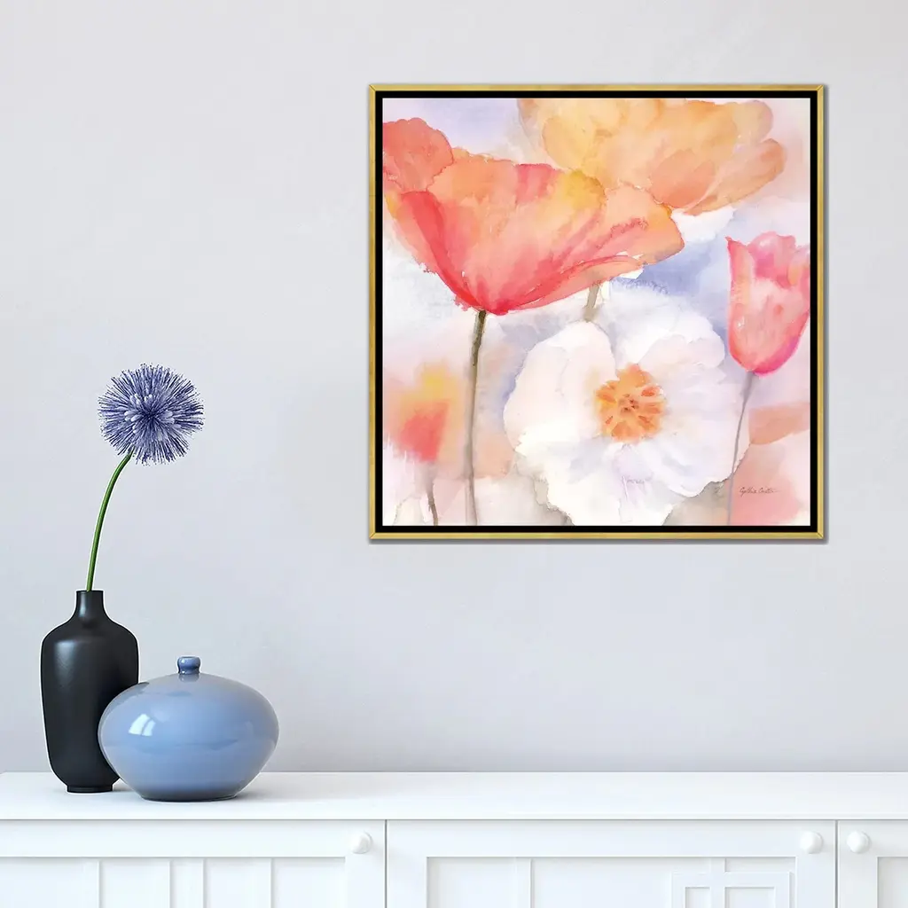 Icanvas "Watercolor Poppy Meadow Pastel I" By Cynthia Coulter Framed Canvas Print - White - 18x18