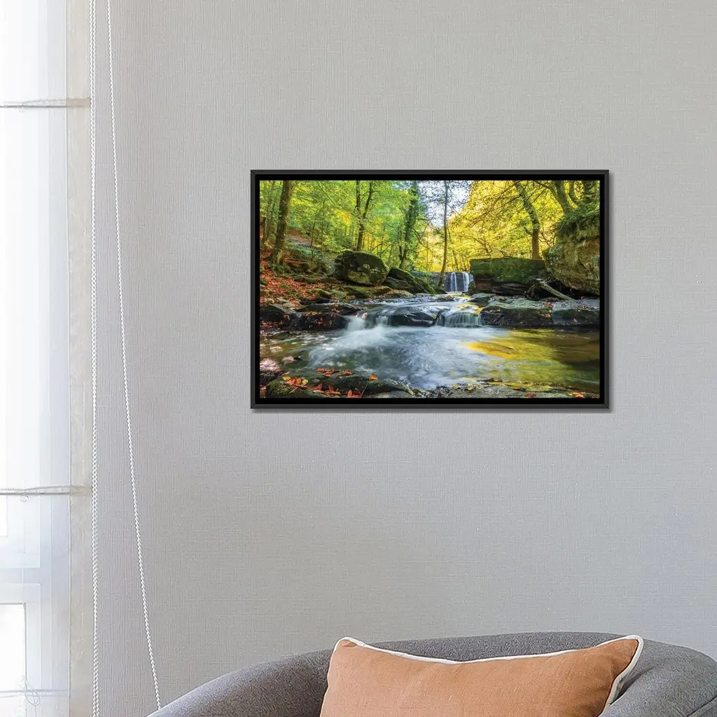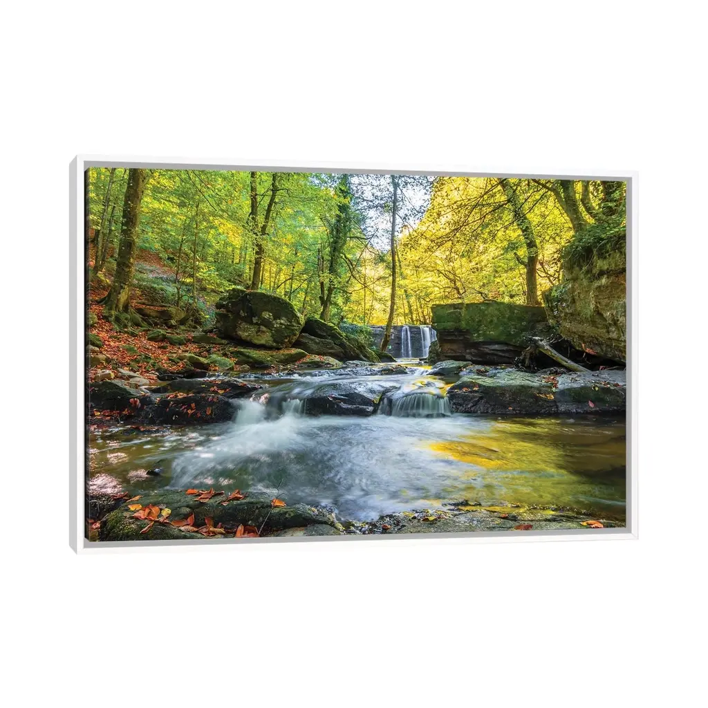Icanvas "Waterfall Iii" By Nejdet Duzen Framed Canvas Print - Gold - 18x26