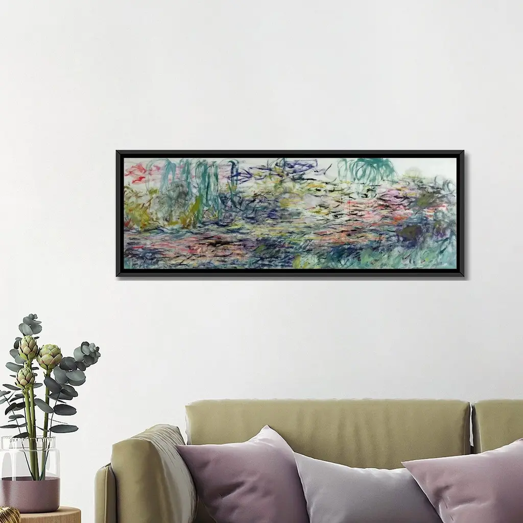 Icanvas "Waterlilies, 1917-19 " By Claude Monet Framed Canvas Print - 16x48 - Black