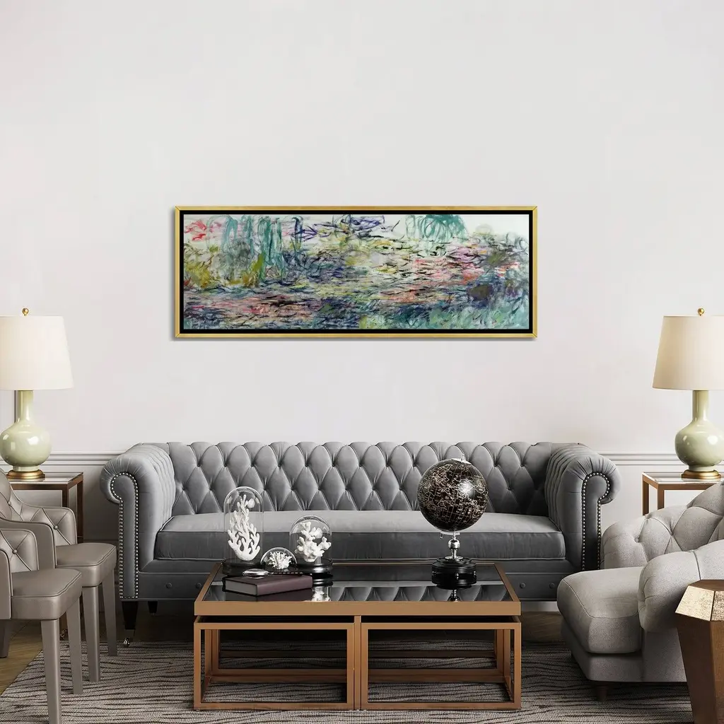 Icanvas "Waterlilies, 1917-19 " By Claude Monet Framed Canvas Print - 20x60 - Gold