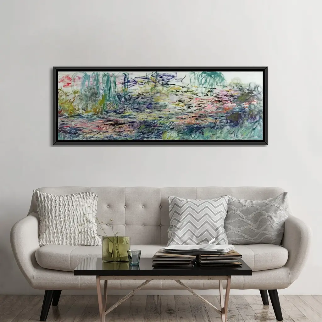 Icanvas "Waterlilies, 1917-19 " By Claude Monet Framed Canvas Print - 24x72 - Black
