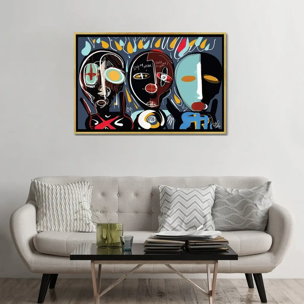 Icanvas "We Are A Family" By Emmanuel Signorino Framed Canvas Print - Gold - 18x26