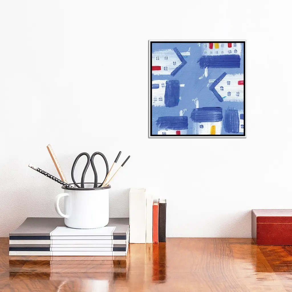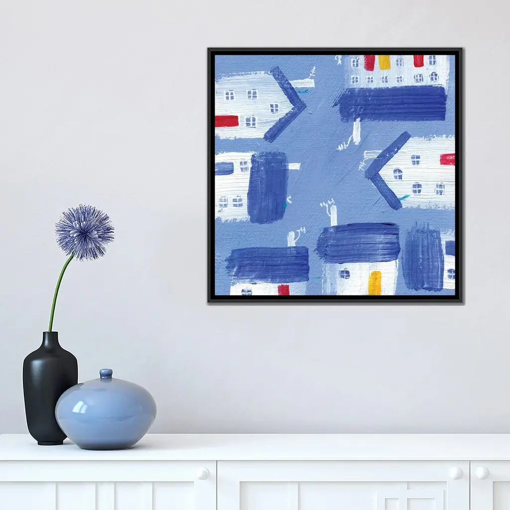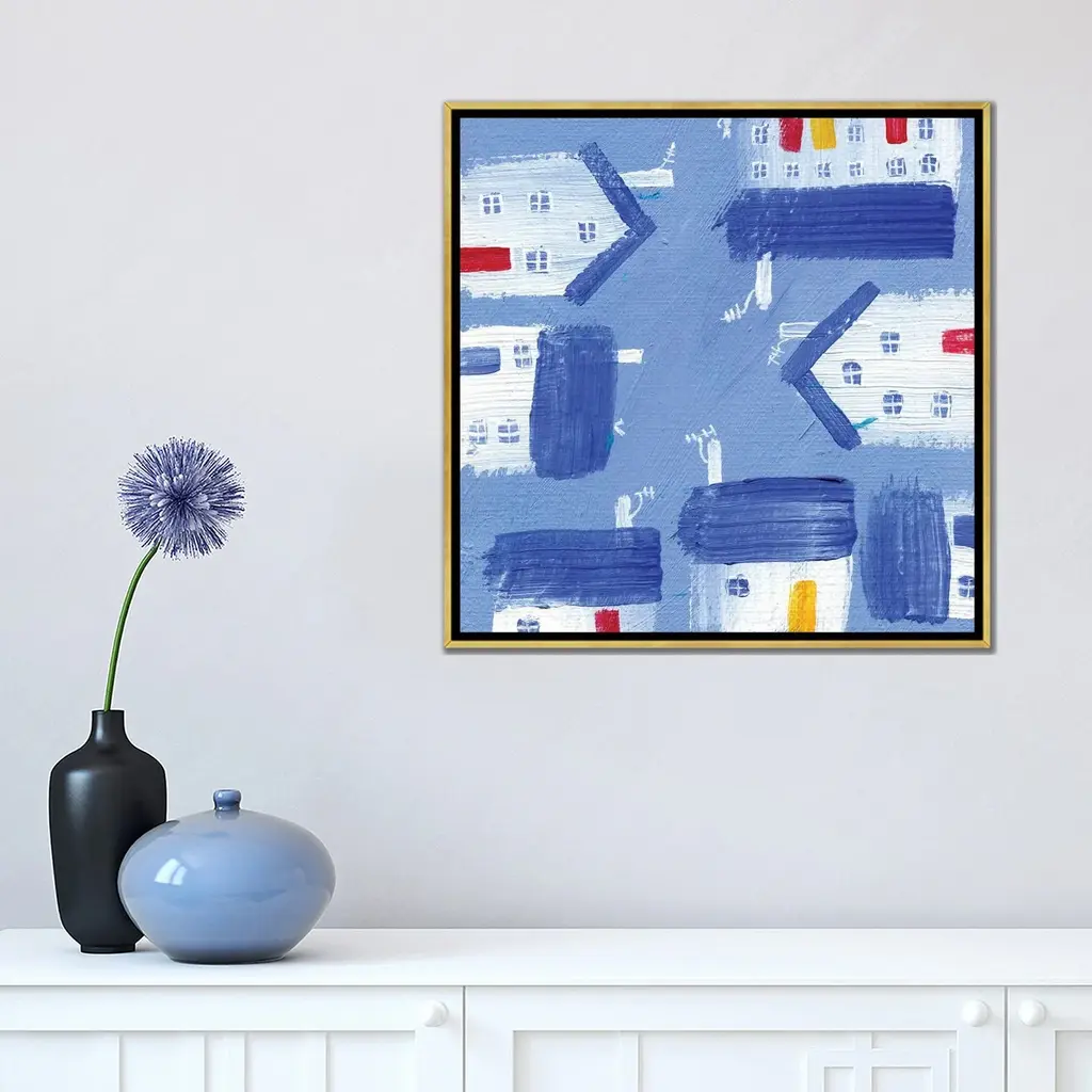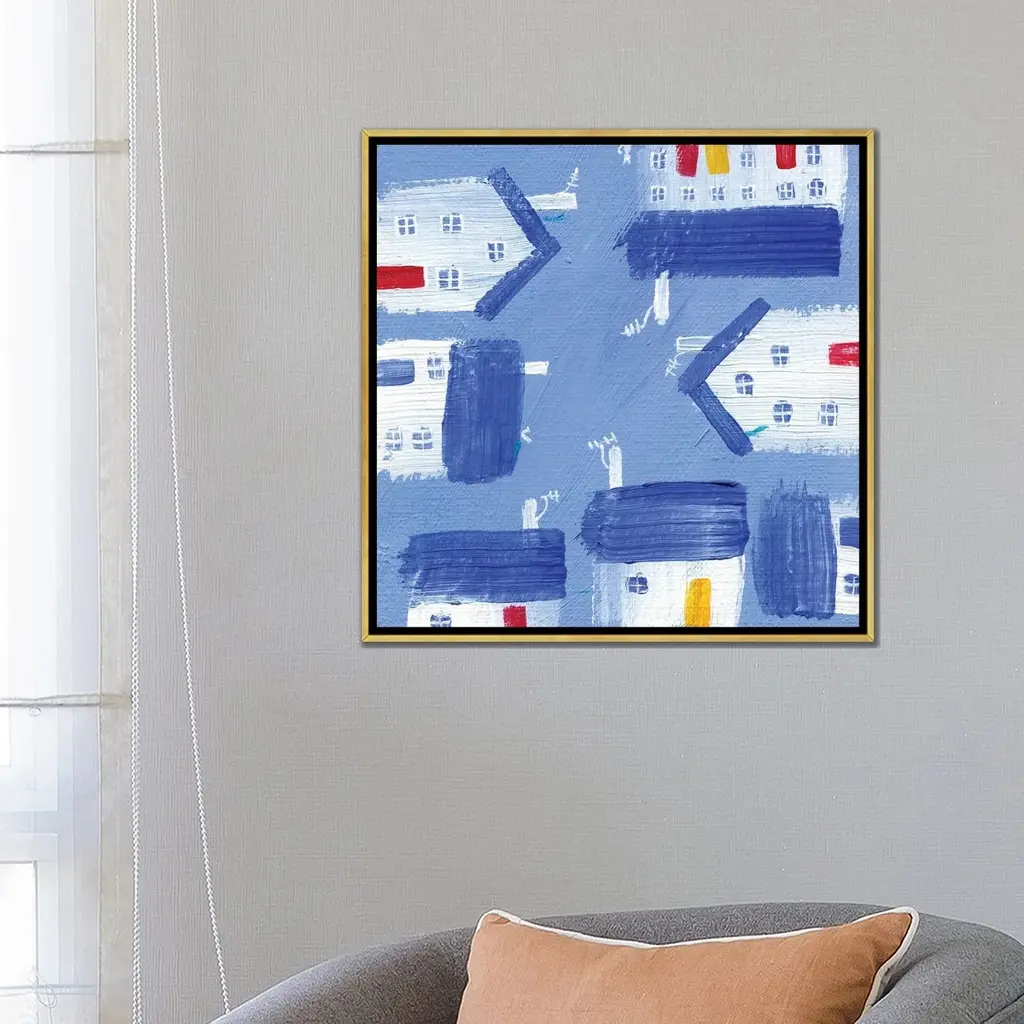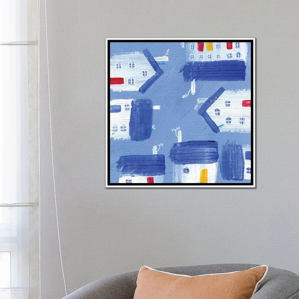 Add brilliance to your space with the "Wee Hooses" Framed Canvas Print by Nic Squirrell. Crafted in the USA with artist-grade canvas, this Giclee artwork offers the texture and feel of a fine-art painting. Professionally hand-stretched and stapled over pine-wood bars, it features a Gallery Wrap style that presents the artwork in galleries. The canvas is mounted to a 2-inch thick, elegant hardwood frame, creating a "floating" illusion with a 3/8" space between the art and frame. With fade-resistant archival inks, this print guarantees vibrant colors that remain perfect for decades. Enhance your home with this contemporary and uncompromising style!Features: