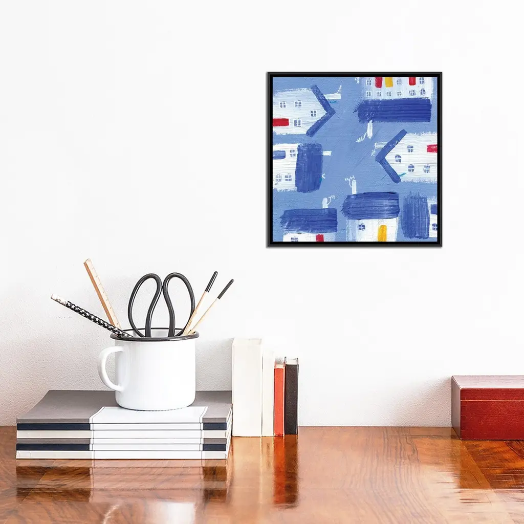 Icanvas "Wee Hooses" By Nic Squirrell Framed Canvas Print - White - 18x18