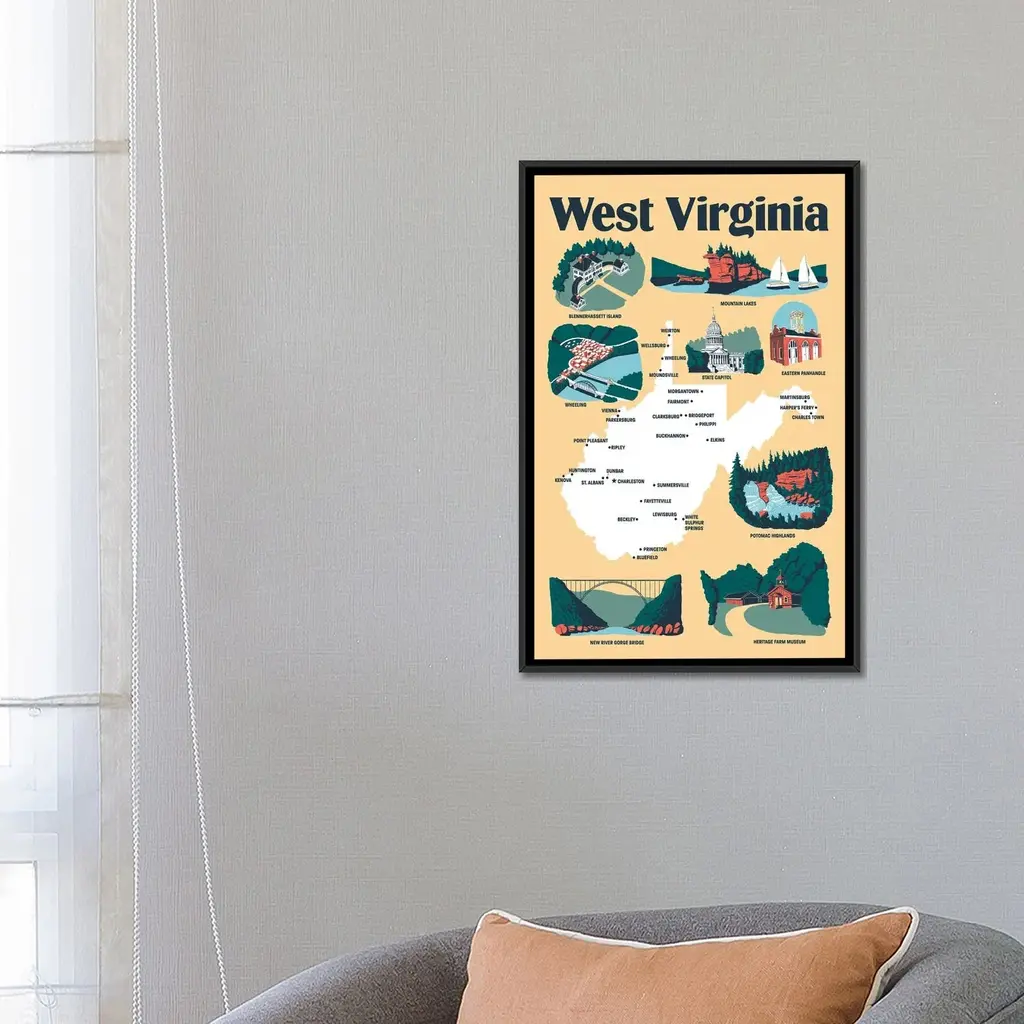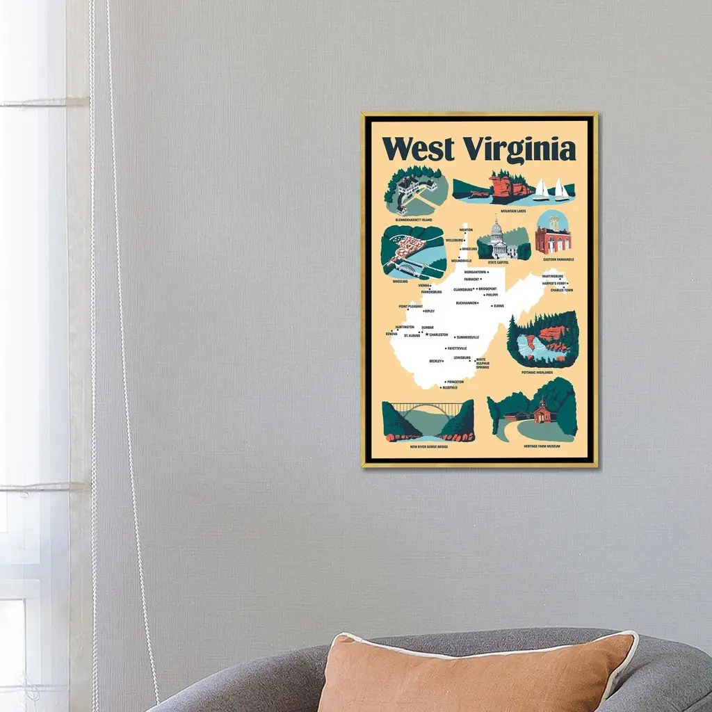 Icanvas "West Virginia" By Vestiges Framed - Gold - 26x18