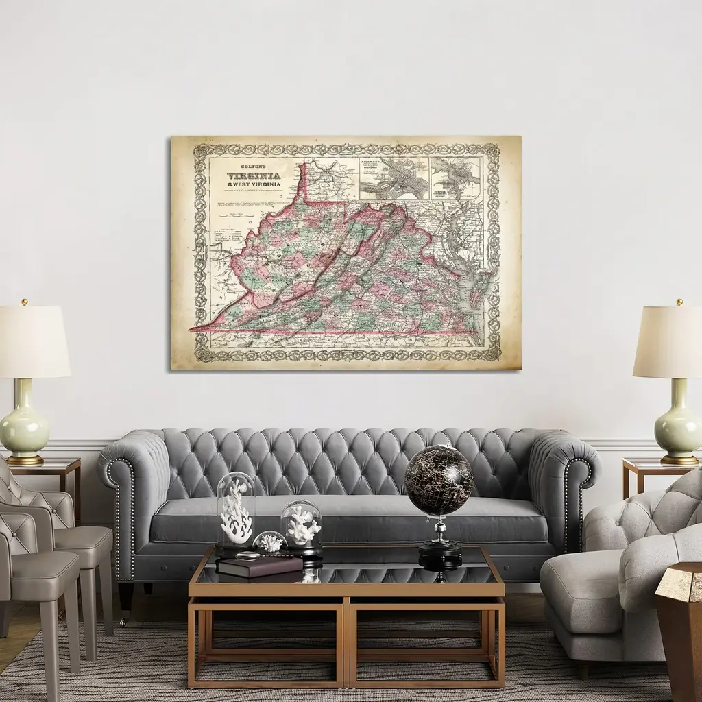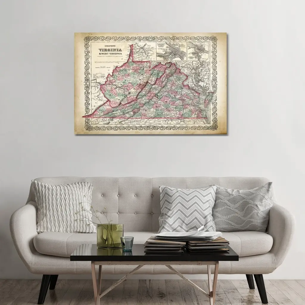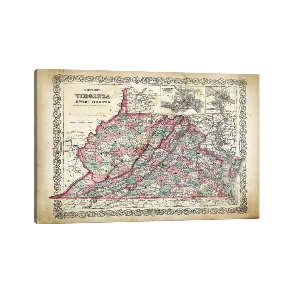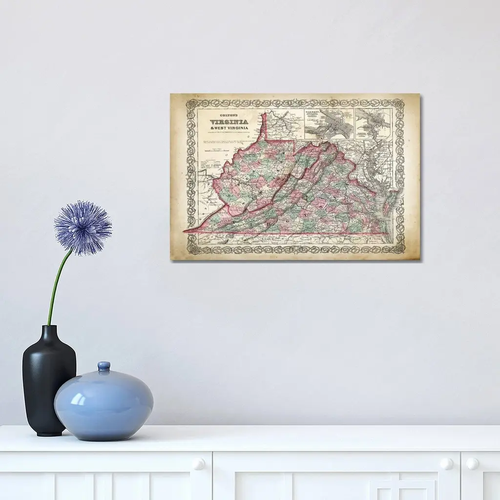Icanvas "West Virginia Map" By Patentprintstore Canvas Print - 12x18x1.5