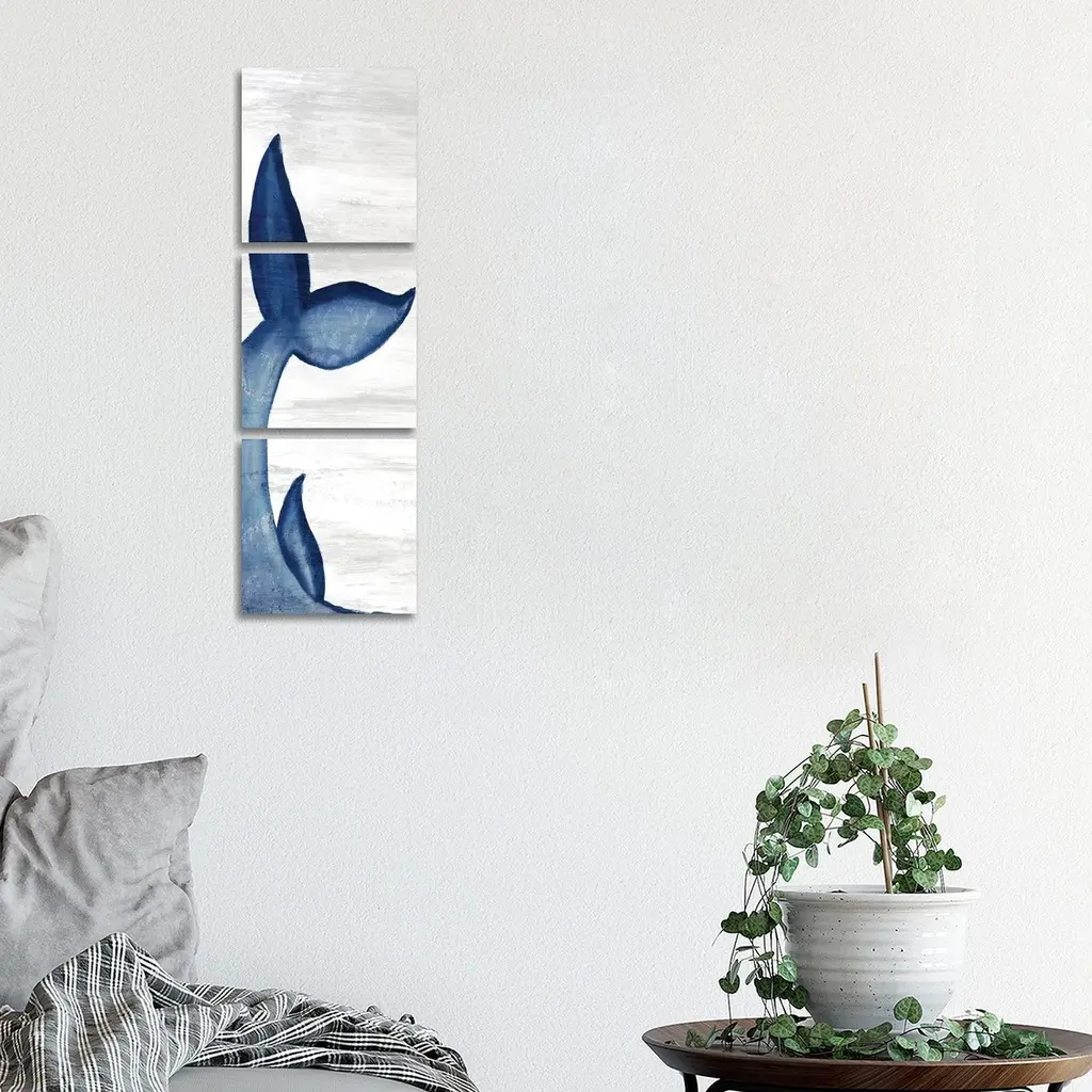 Icanvas "Whale Tails I" By Ann Bailey 3-Piece Canvas Wall Art Set - 48x16x1.5