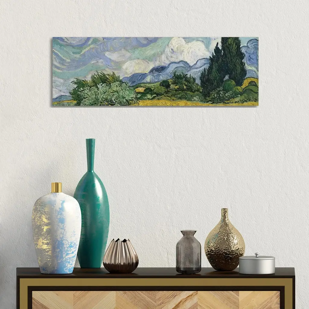 Icanvas "Wheat Field With Cypresses, June-July 1889 (Metropolitan Museum Of Art, Nyc)" By Vincent Van Gogh Canvas Print - 16x48x1.5