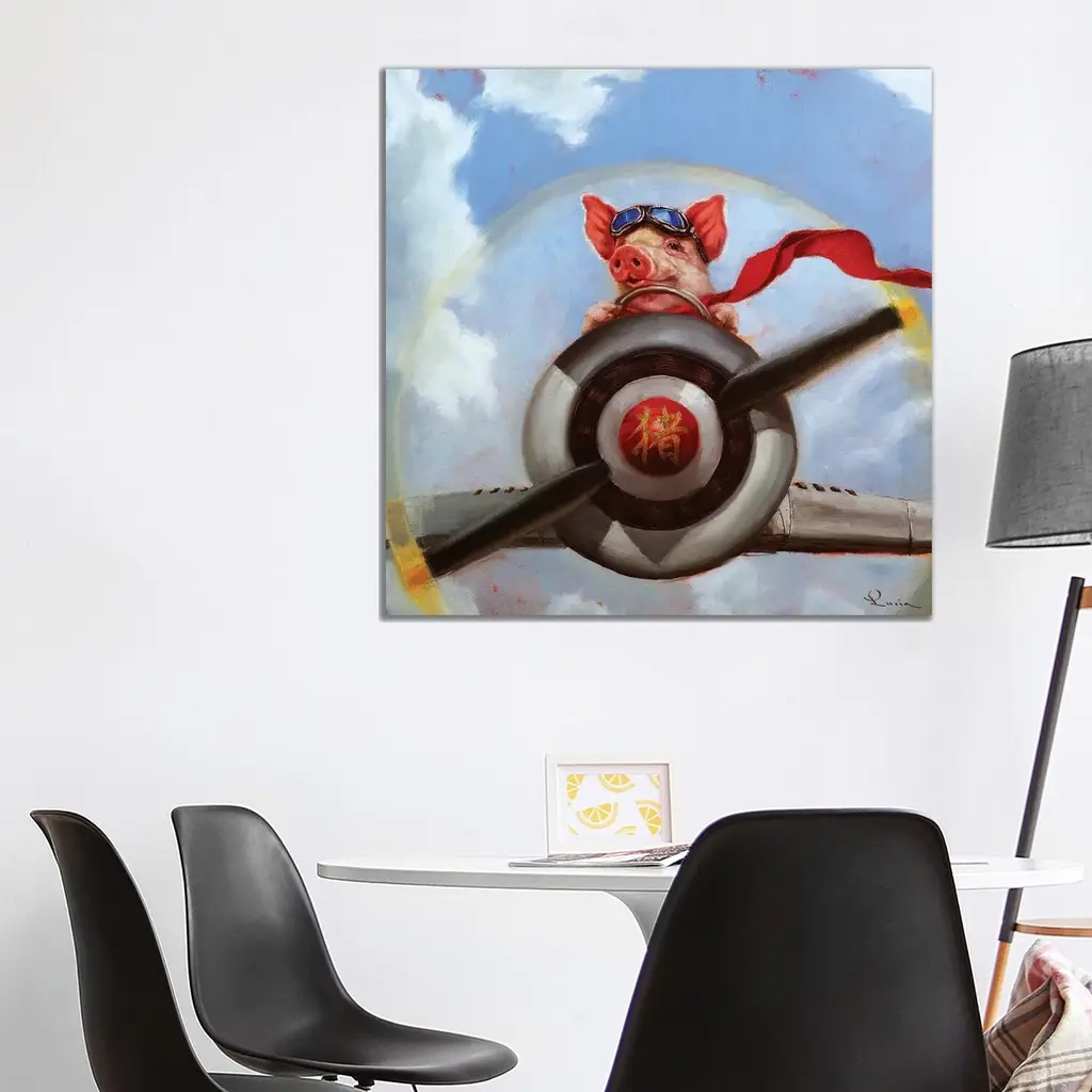 Icanvas "When Pigs Fly" By Lucia Heffernan Canvas Print - 12x12x0.75