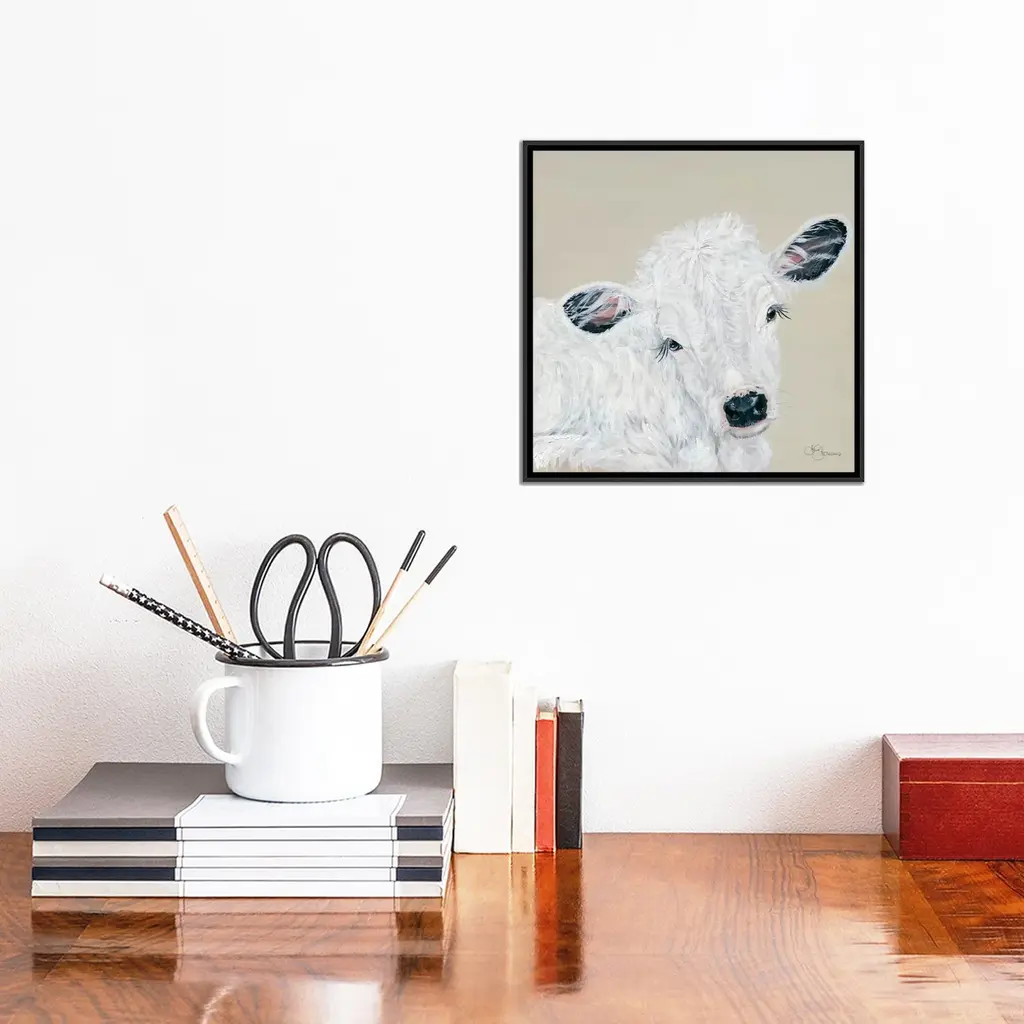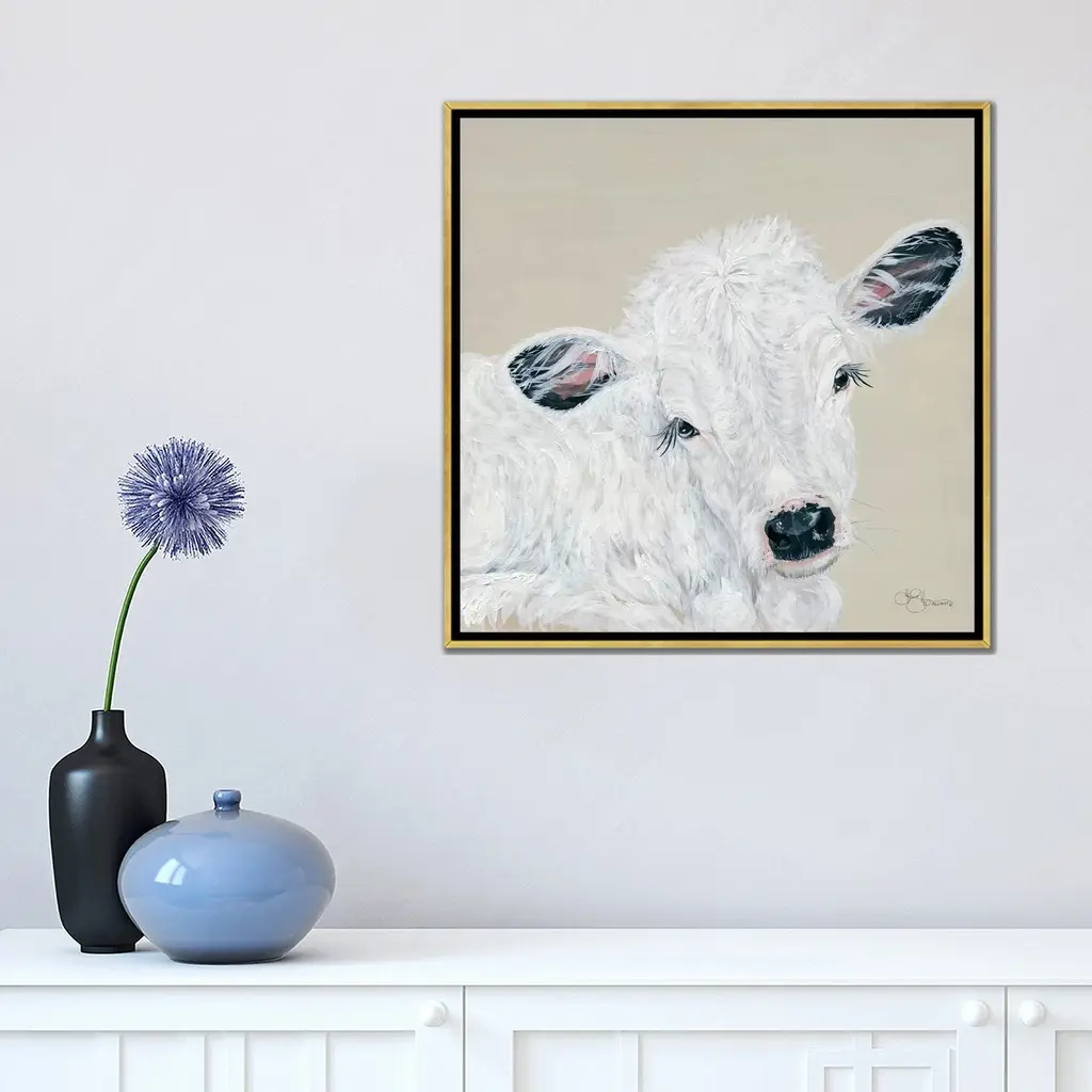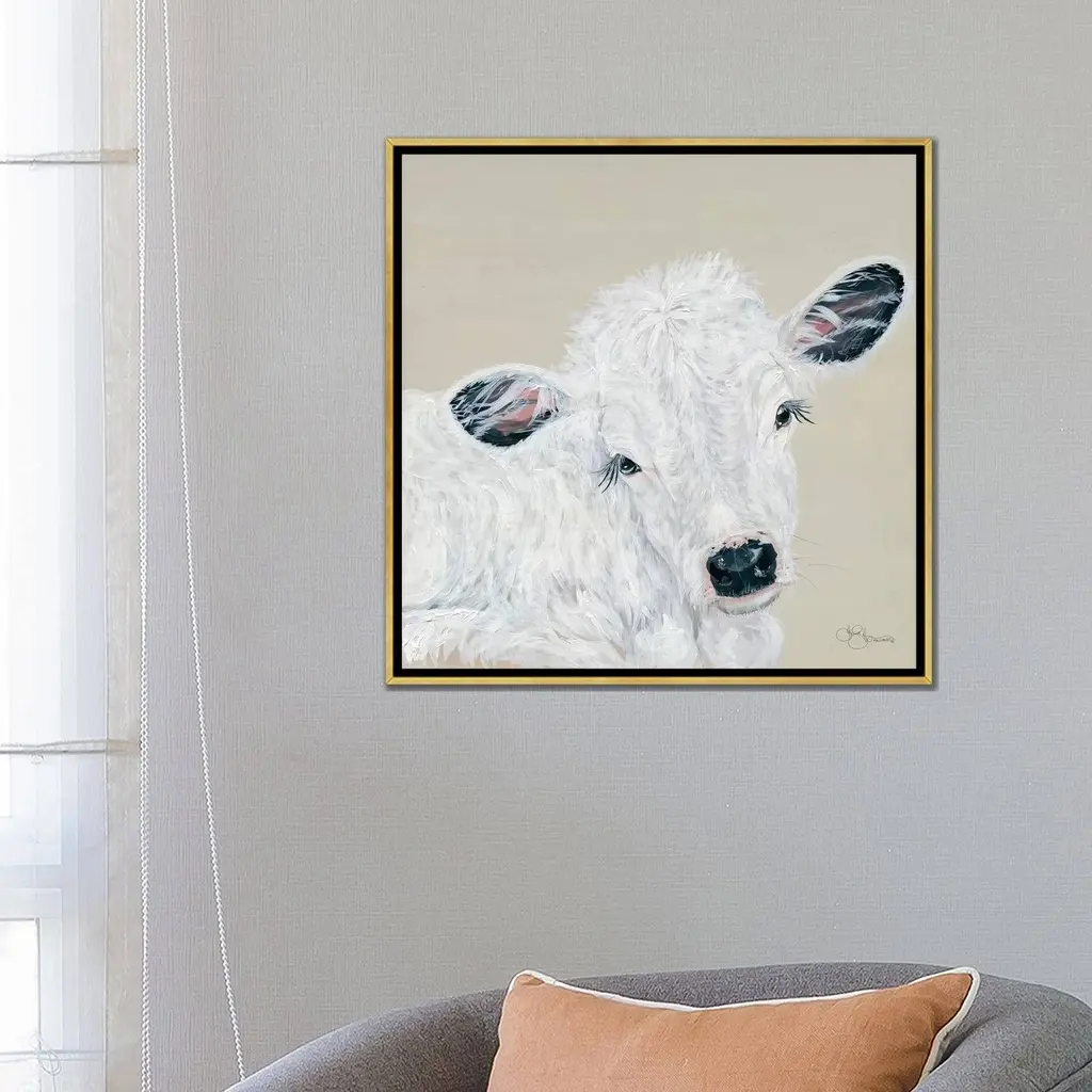 Icanvas "White Calf" By Hollihocks Art Framed Canvas Print - Gold - 26x26