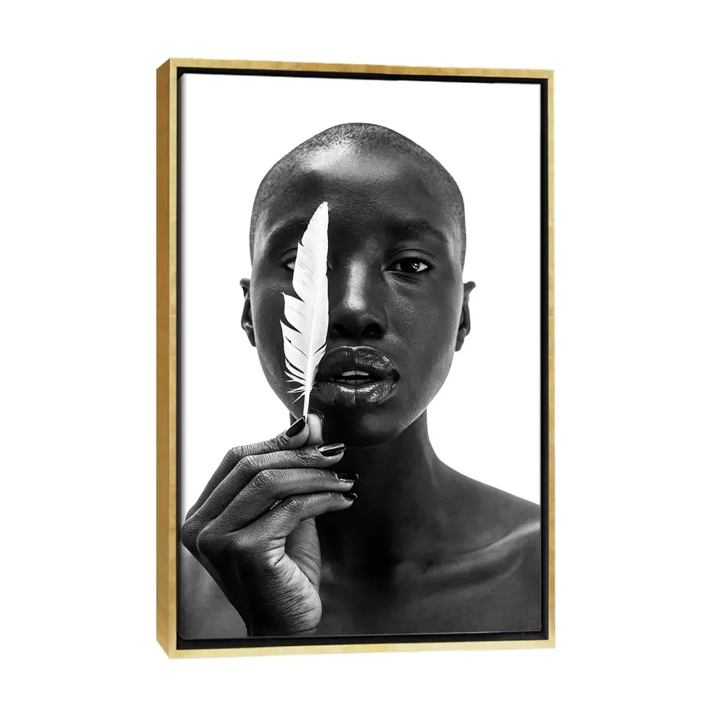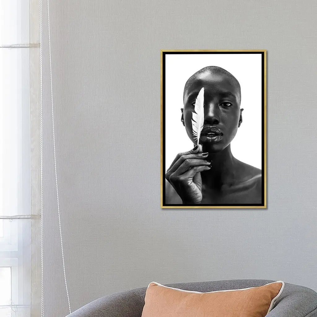 Icanvas "White Feather" By Gregory Prescott Framed Canvas Print - Black - 40x26