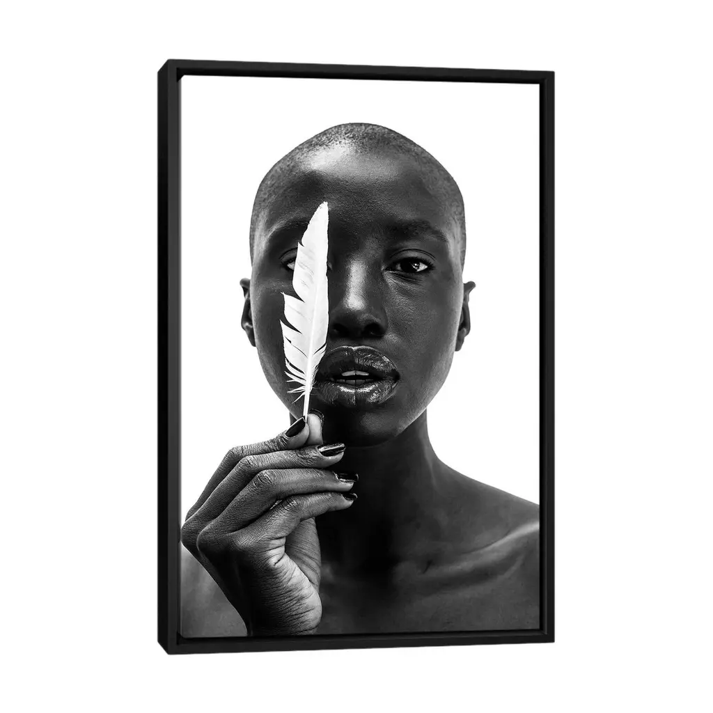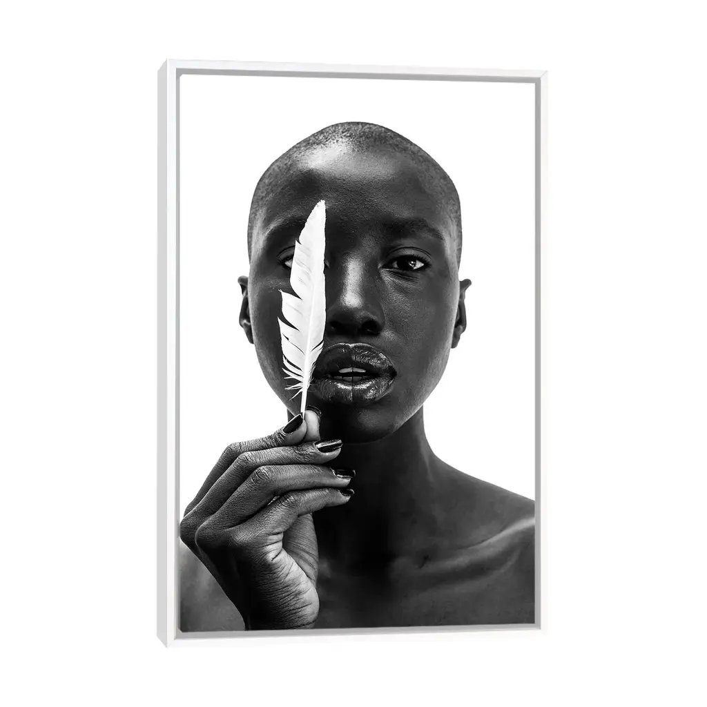 Icanvas "White Feather" By Gregory Prescott Framed Canvas Print - Gold - 26x18