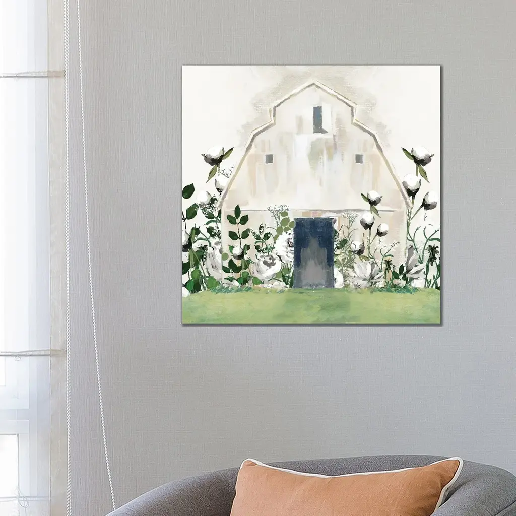 Icanvas "White Floral Barn" By White Ladder Canvas Print - 12x12x1.5