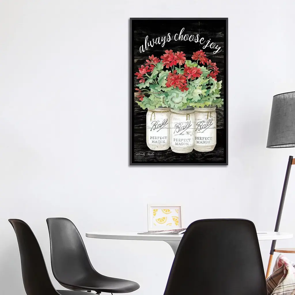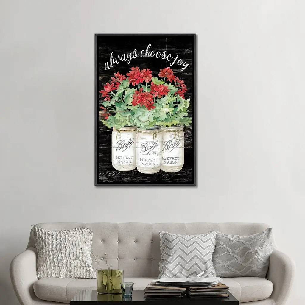 Icanvas "White Jars - Always Choose Joy" By Cindy Jacobs Framed - Ebony - 48x32