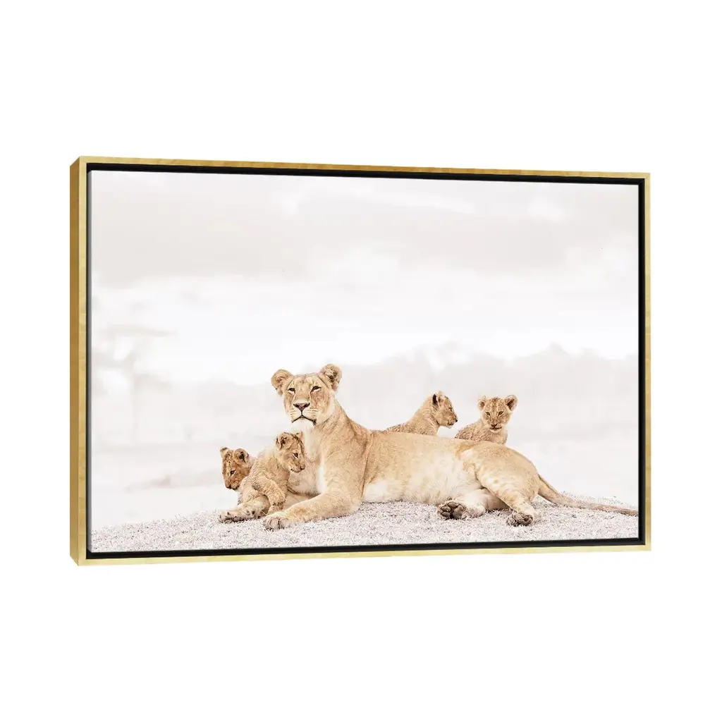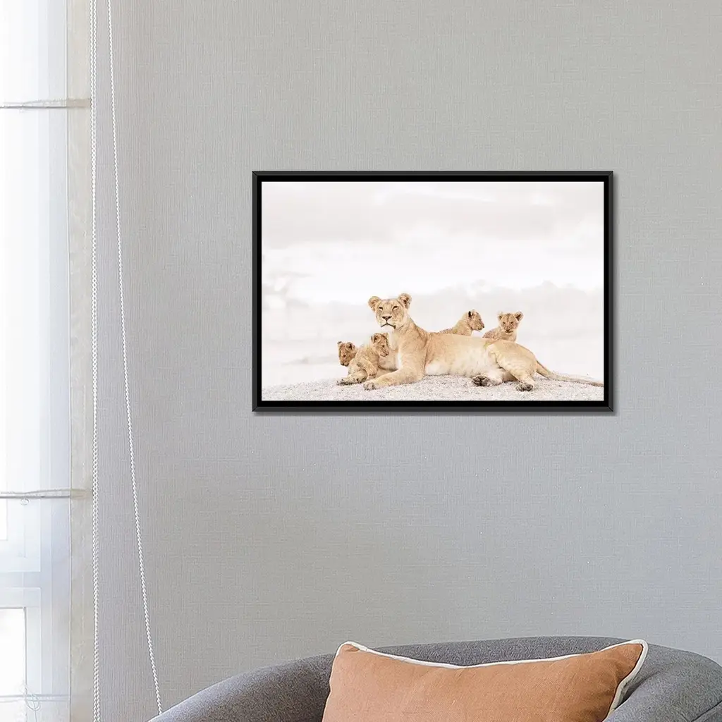Icanvas "White Lioness & Cubs" By Klaus Tiedge Framed Canvas Print - Black - 18x26