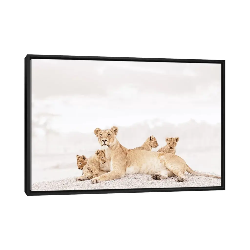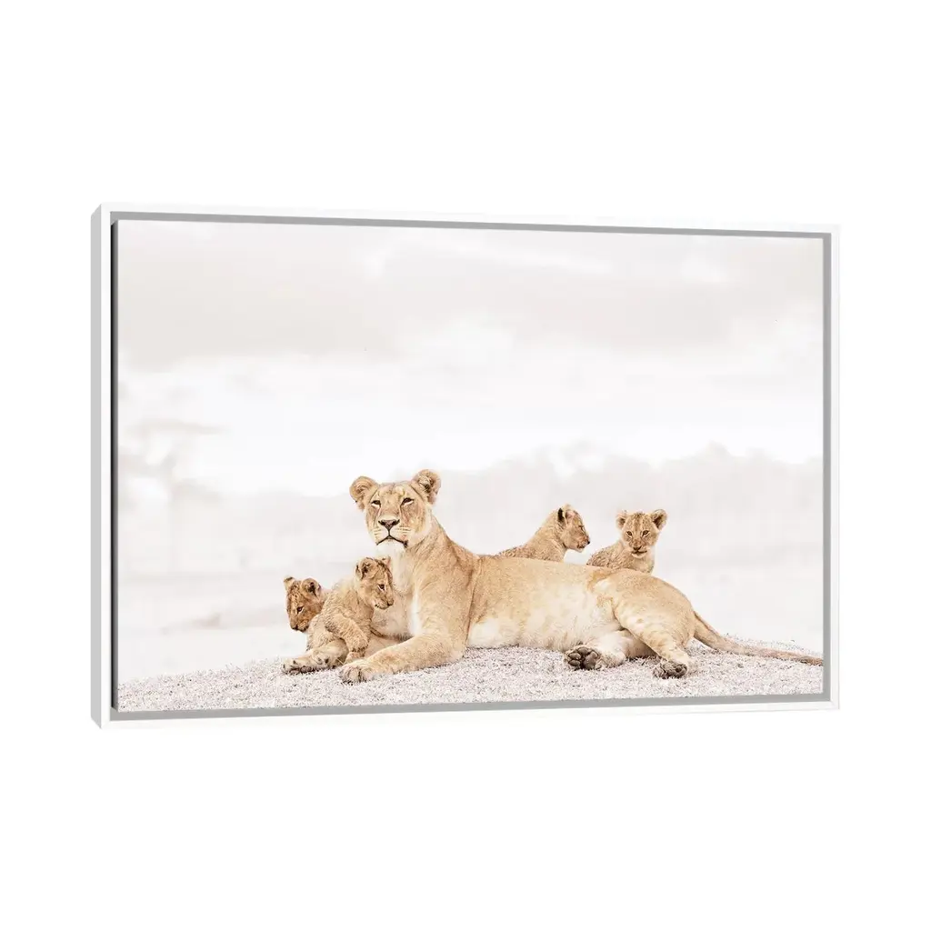 Icanvas "White Lioness & Cubs" By Klaus Tiedge Framed Canvas Print - Gold - 26x40