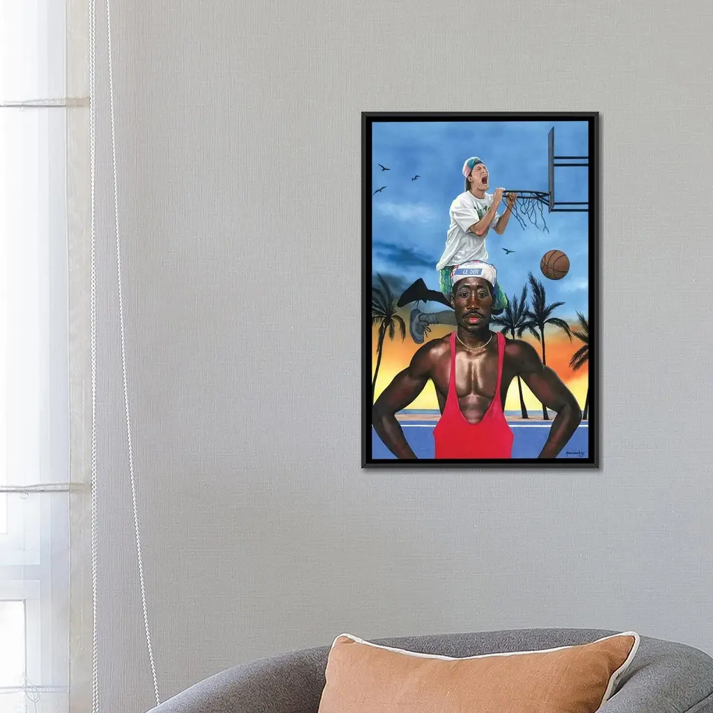 Icanvas "White Men Can't Jump" By Manasseh Johnson Framed Canvas Print - Gold - 26x18