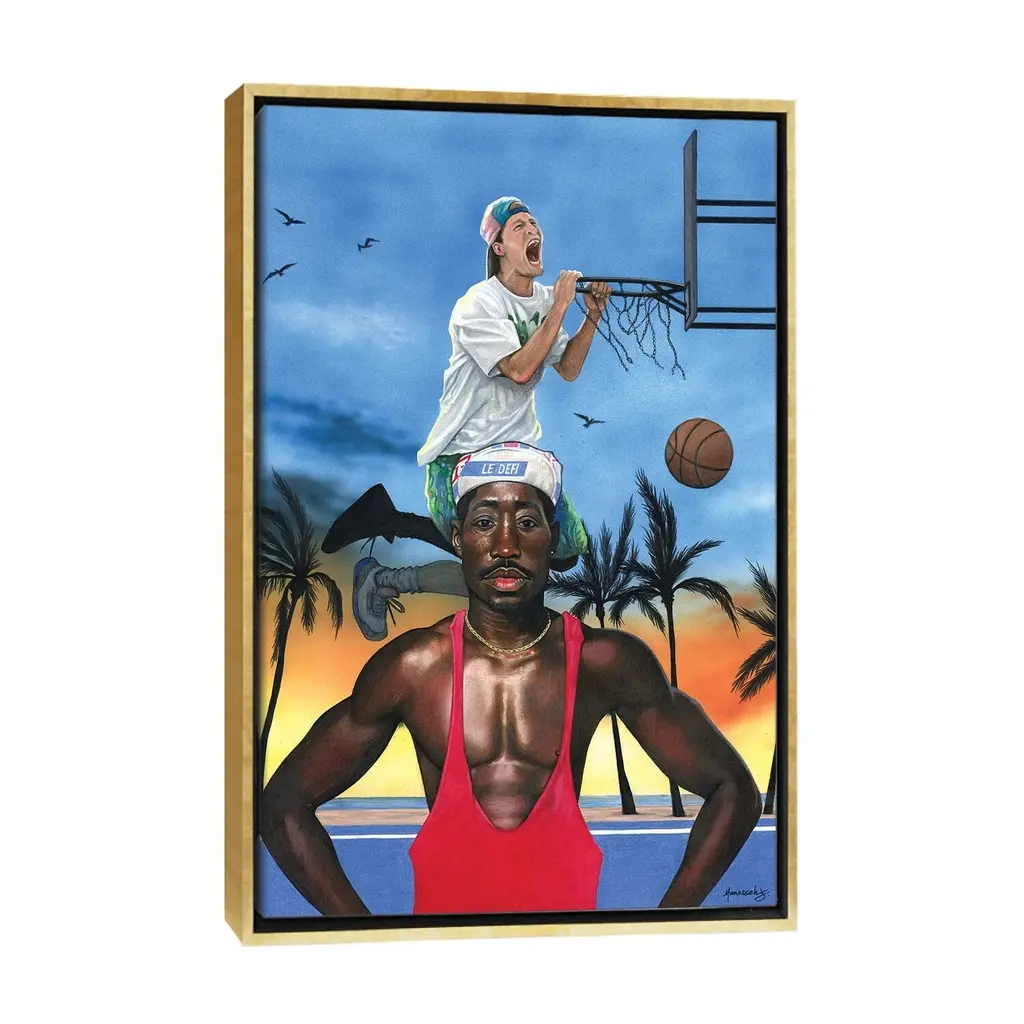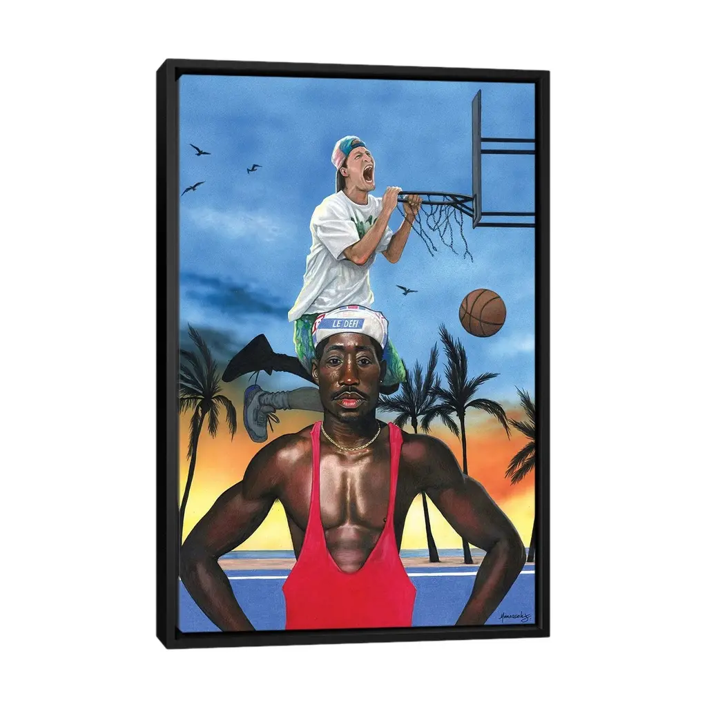 Icanvas "White Men Can't Jump" By Manasseh Johnson Framed Canvas Print - White - 40x26