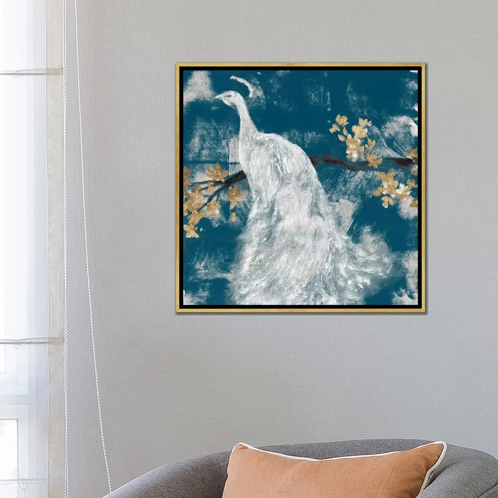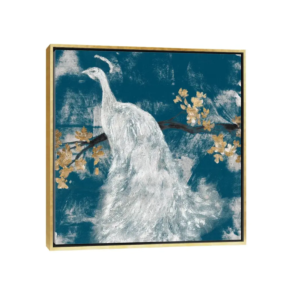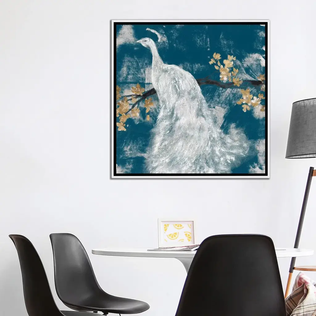 Icanvas "White Peacock On Indigo Ii" By Jennifer Goldberger Framed Canvas Print - Black - 26x26
