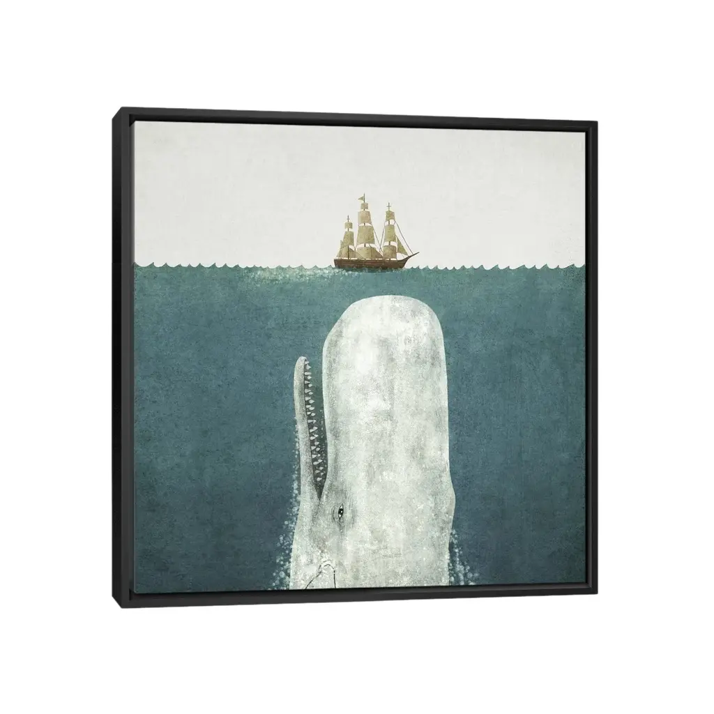 Icanvas "White Whale Square" By Terry Fan Framed Canvas Print - Black - 37x37