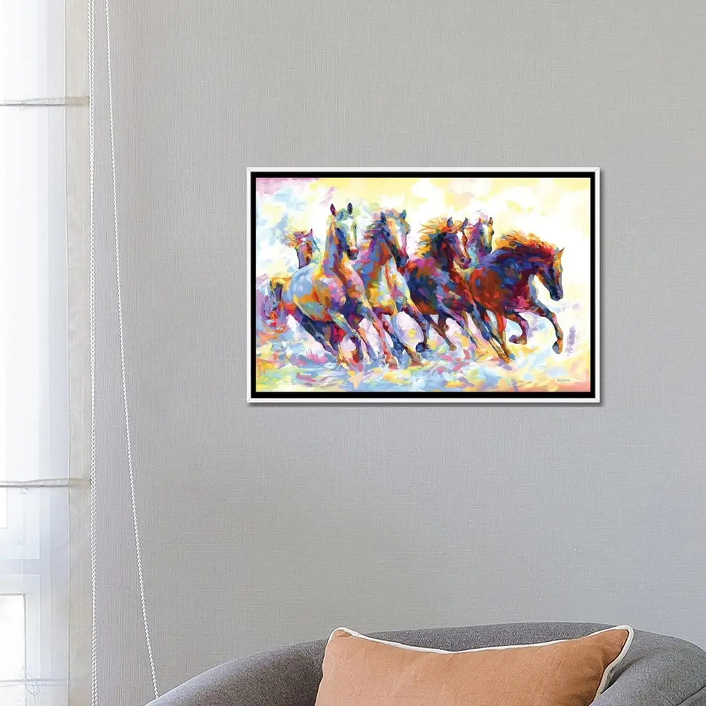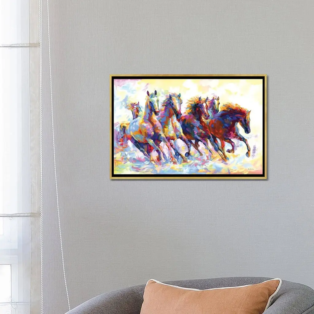 Icanvas "Wild Horses Running" By Leon Devenice Framed Canvas Print - Black - 18x26