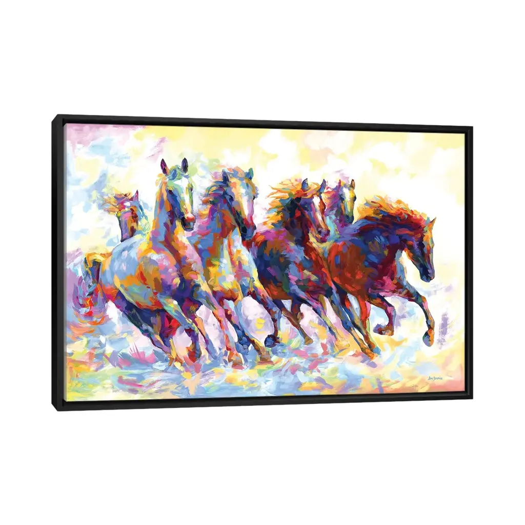 Icanvas "Wild Horses Running" By Leon Devenice Framed Canvas Print - Black - 26x40