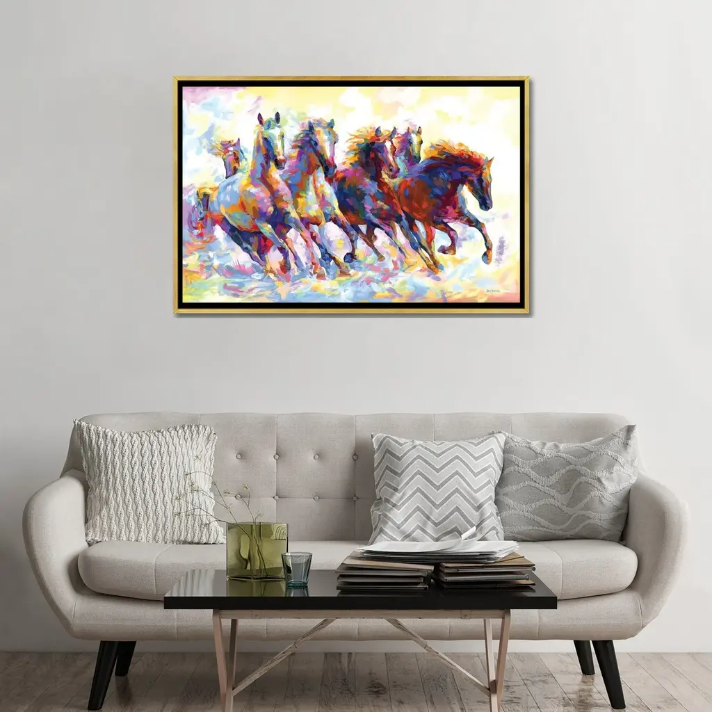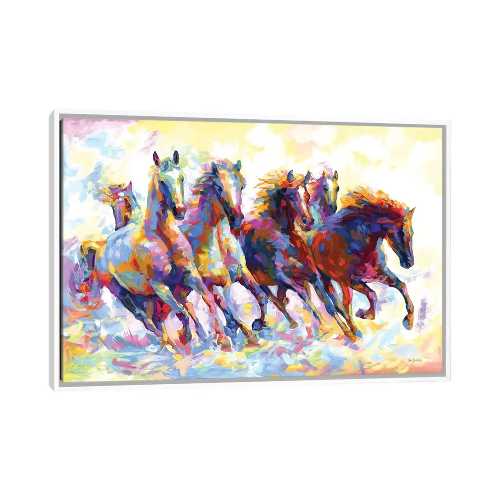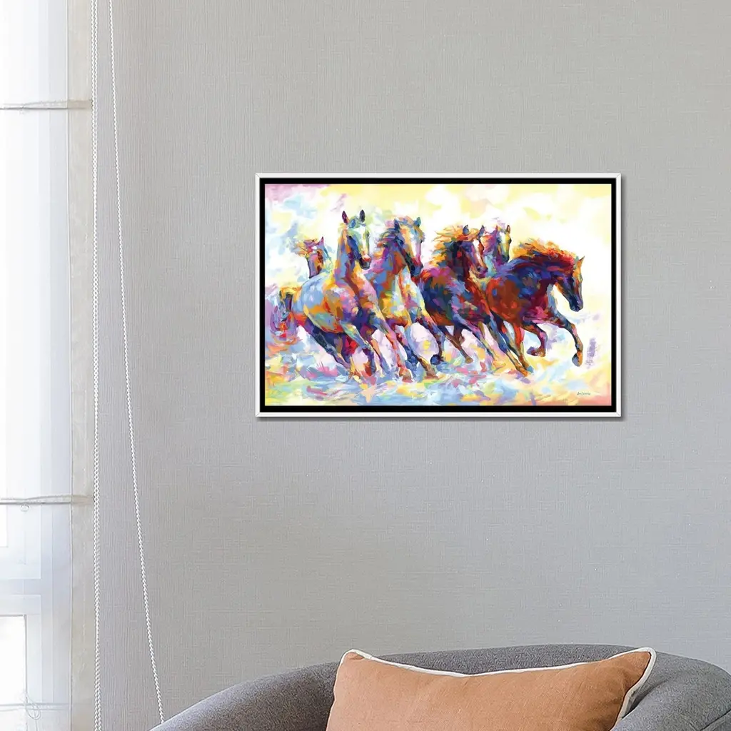 Icanvas "Wild Horses Running" By Leon Devenice Framed Canvas Print - Black - 32x48