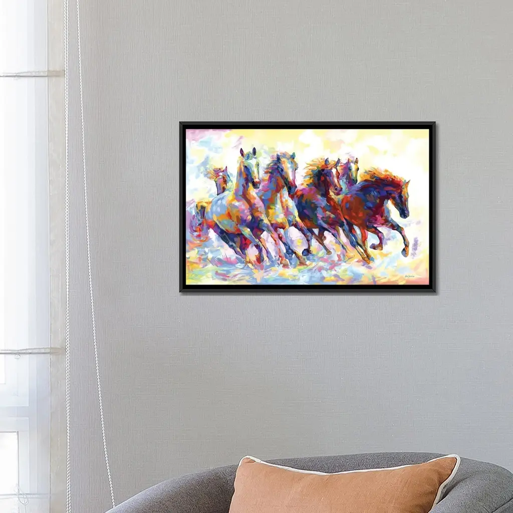 Icanvas "Wild Horses Running" By Leon Devenice Framed Canvas Print - Gold - 32x48