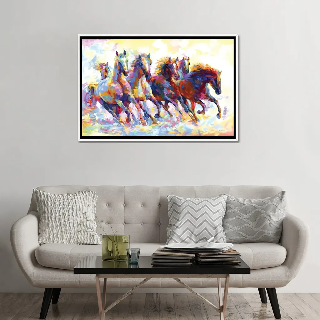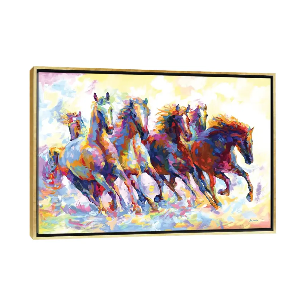 Icanvas "Wild Horses Running" By Leon Devenice Framed Canvas Print - White - 18x26