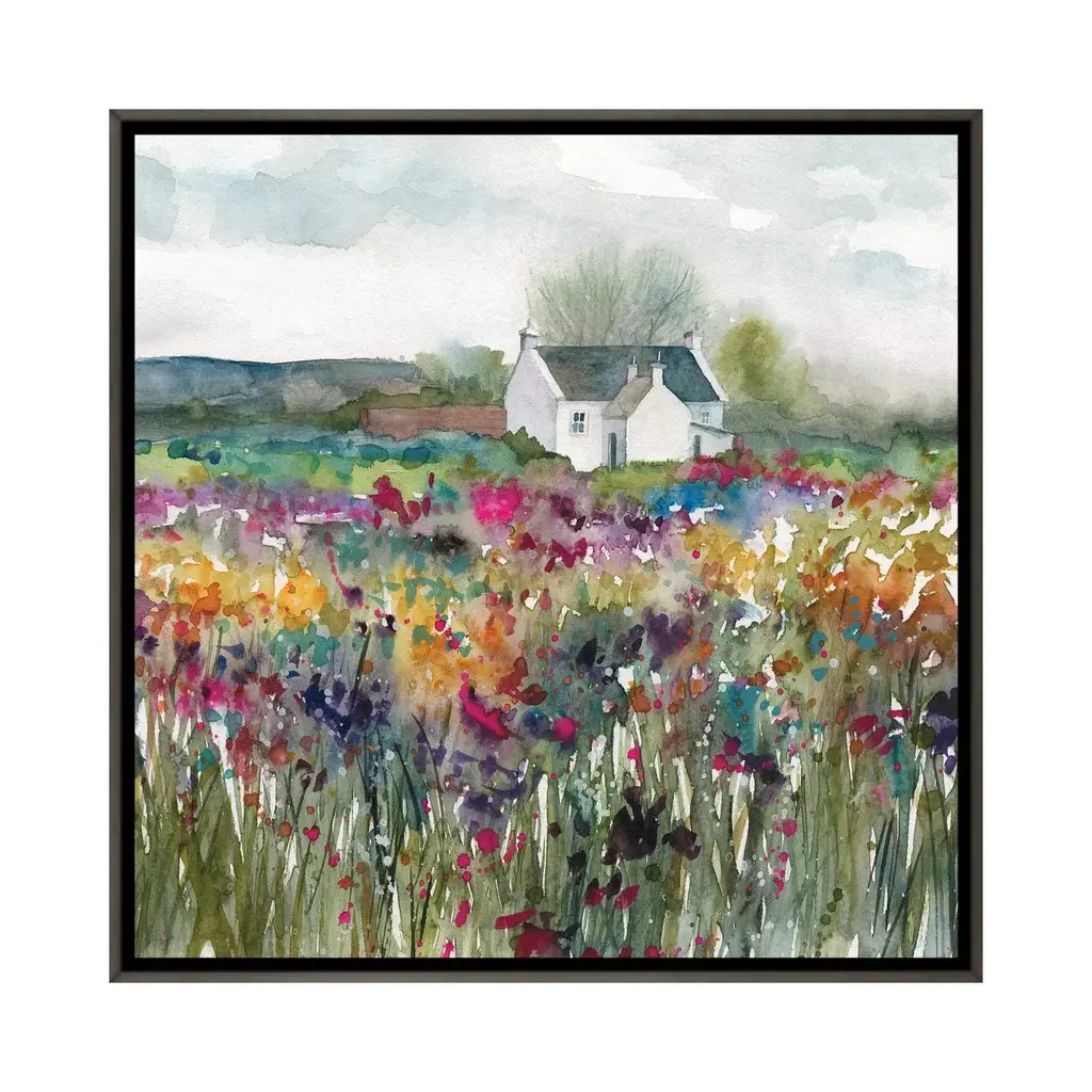 Icanvas "Wildflower Cottage" By Carol Robinson Framed - 26x26 - Charcoal