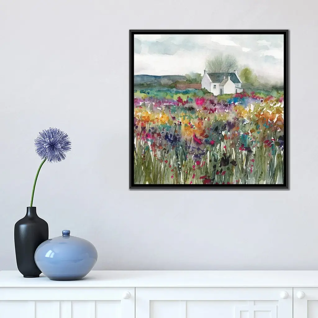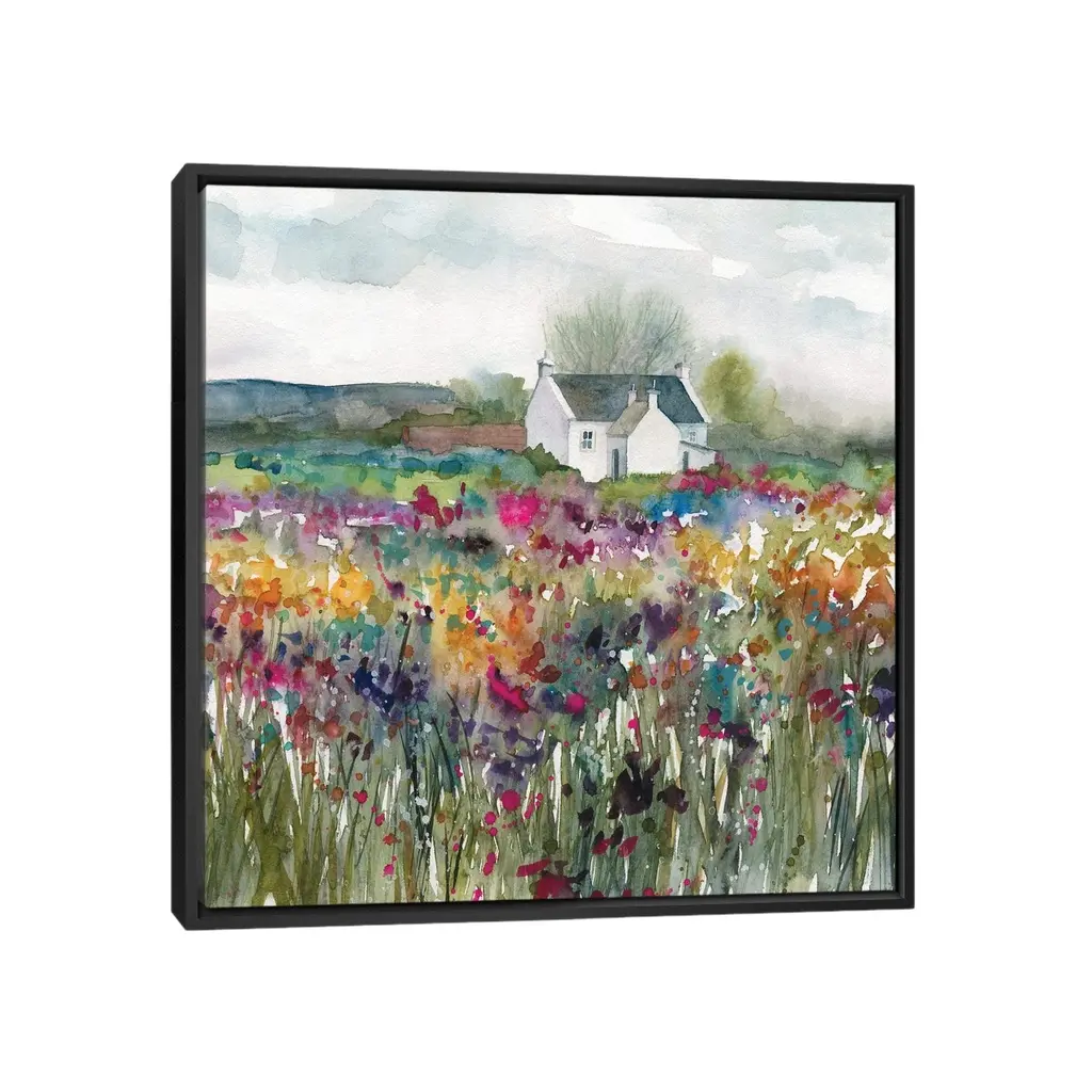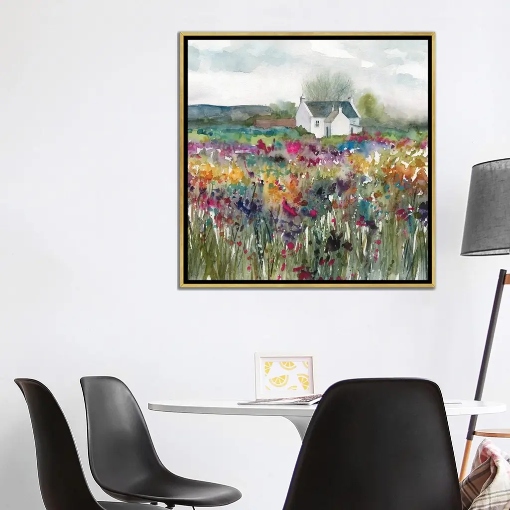 Icanvas "Wildflower Cottage" By Carol Robinson Framed Canvas Print - Gold - 26x26
