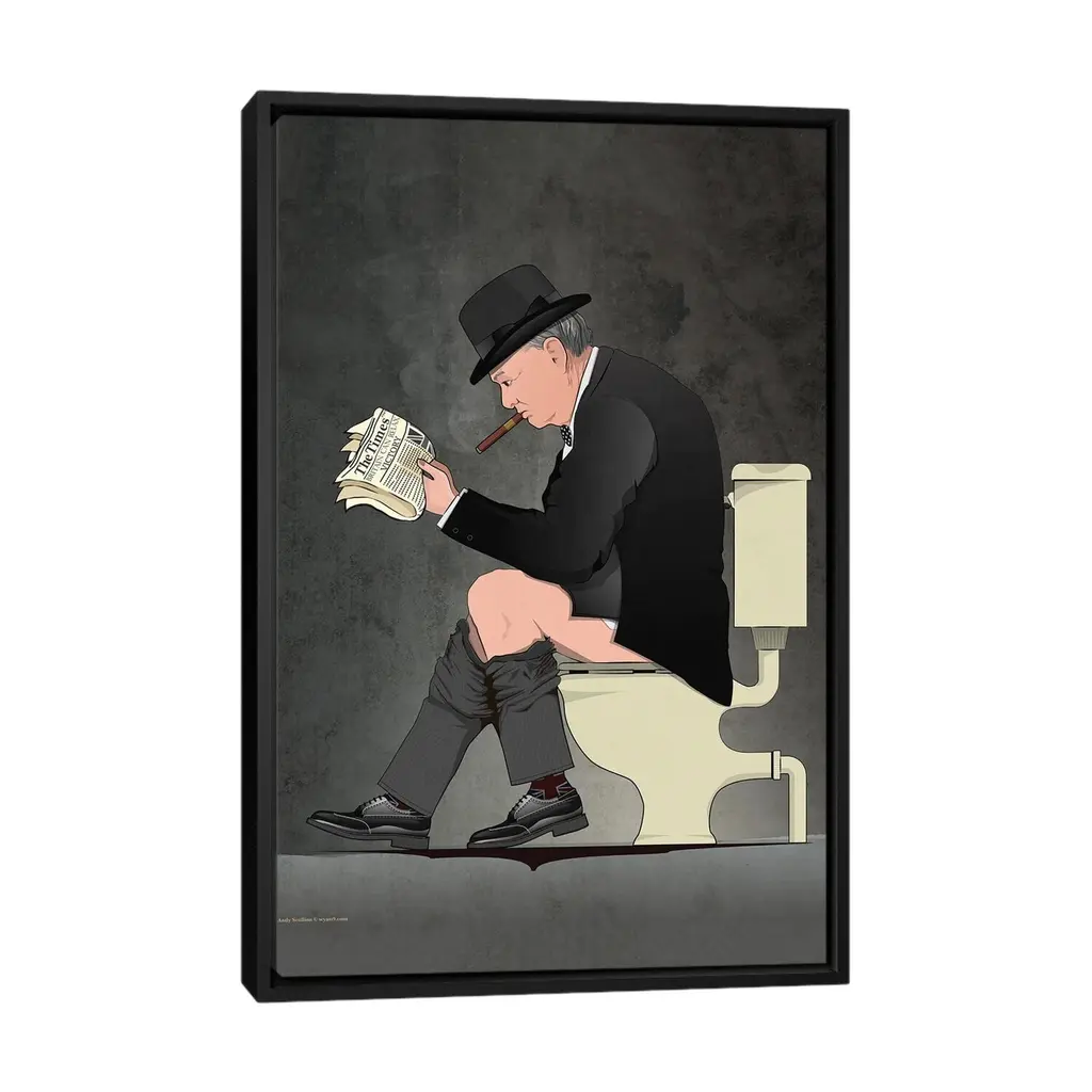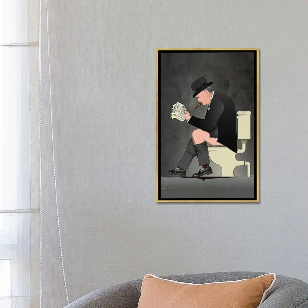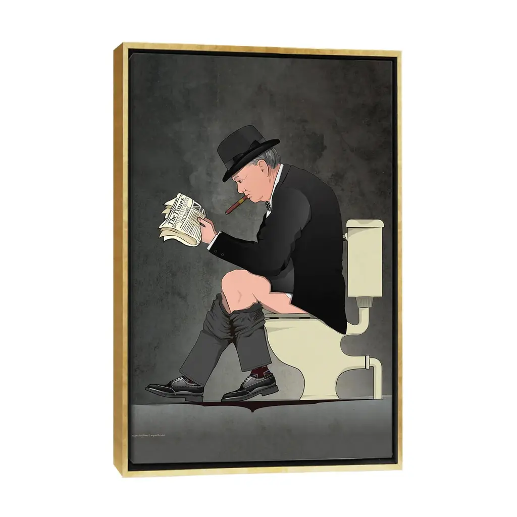 Icanvas "Winston Churchill On The Toilet" By Wyattdesign Framed Canvas Print - Gold - 40x26