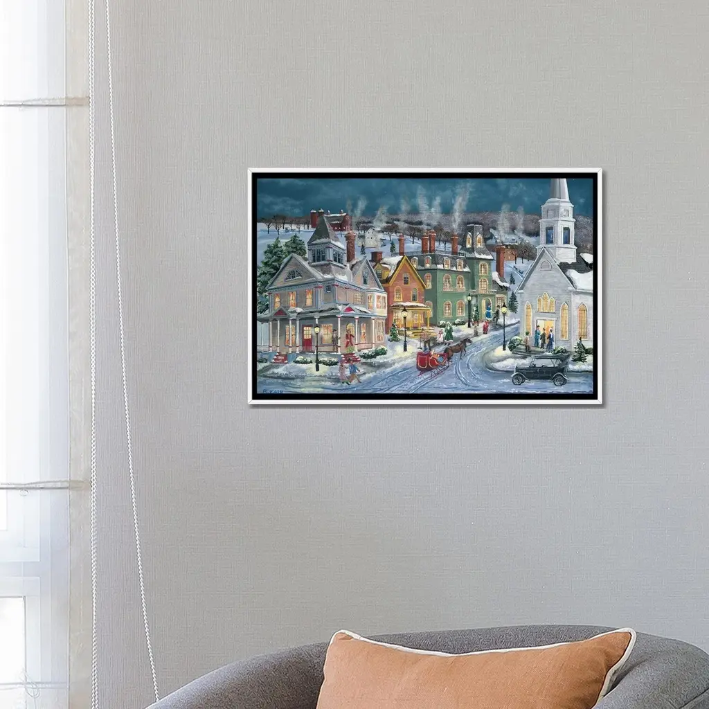 Upgrade your wall decor with the iCanvas "Winter's Eve" by Bob Fair Framed art. This high-quality canvas artwork captures the texture, look, and feel of fine-art paintings, making it a perfect addition to any room. Crafted in the USA with artist-grade canvas, this piece is professionally hand-stretched and stapled over North American pine-wood bars in Gallery Wrap style. The artwork is mounted to a 2-inch thick, elegant hardwood frame, creating a modern "floating" illusion. With fade-resistant archival inks, the vibrant colors and exceptional detail of this contemporary style will remain intact for decades, even in strong light. Elevate your space with this stunning and uncompromising artwork.Features: