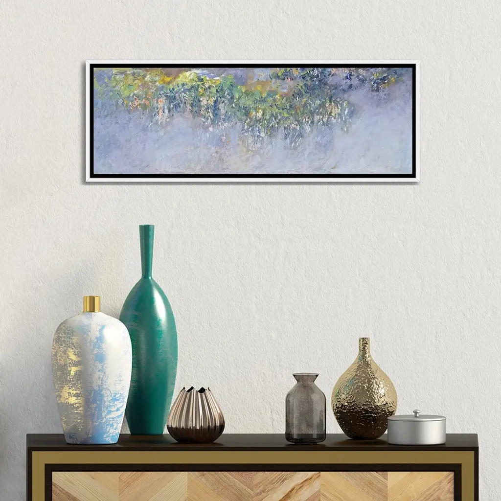 Icanvas "Wisteria, 1919-20 " By Claude Monet Framed Canvas Print - 12x36 - White