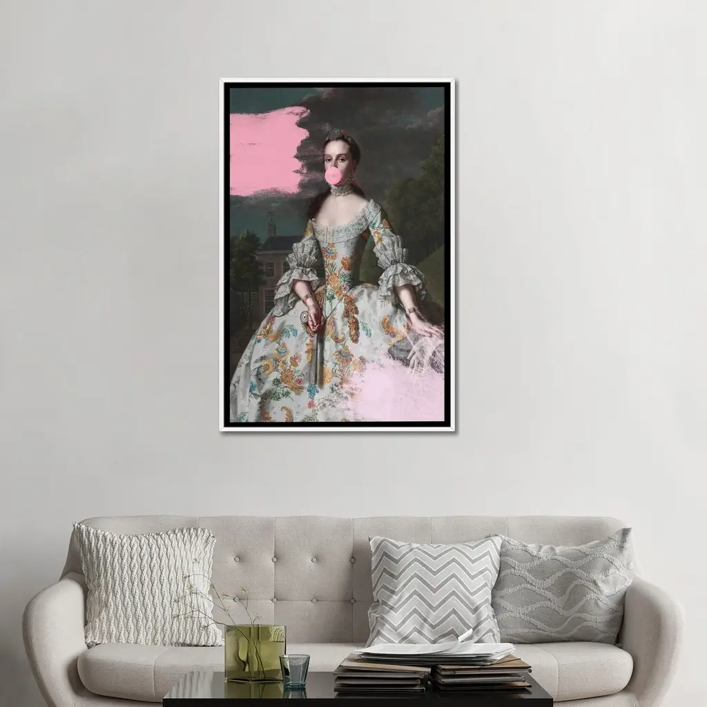 Icanvas "Woman Blowing Bubble Gum Vi" By Grace Digital Art Co Framed Canvas Print - Black - 40x26