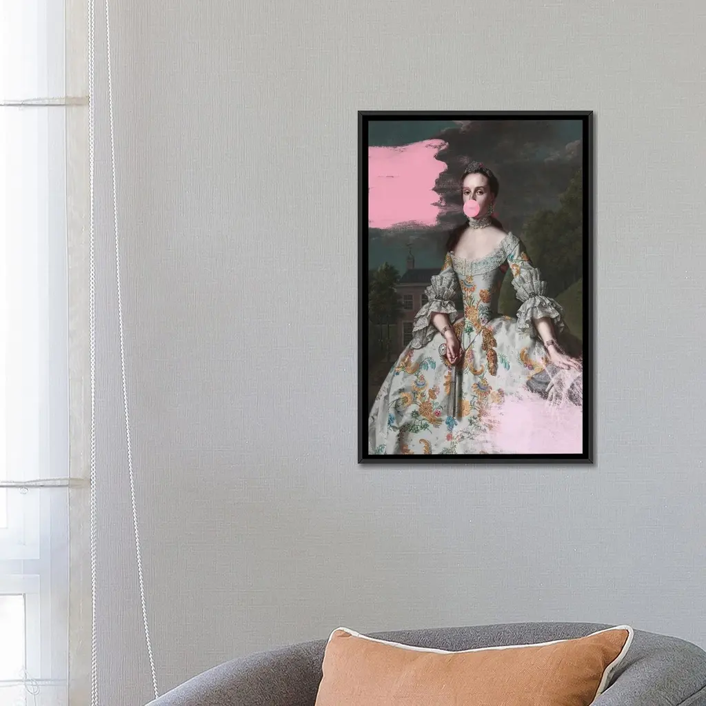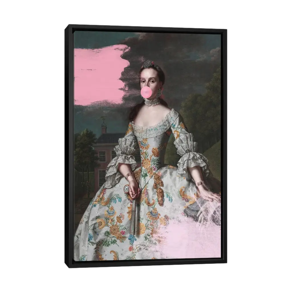 Icanvas "Woman Blowing Bubble Gum Vi" By Grace Digital Art Co Framed Canvas Print - Gold - 26x18