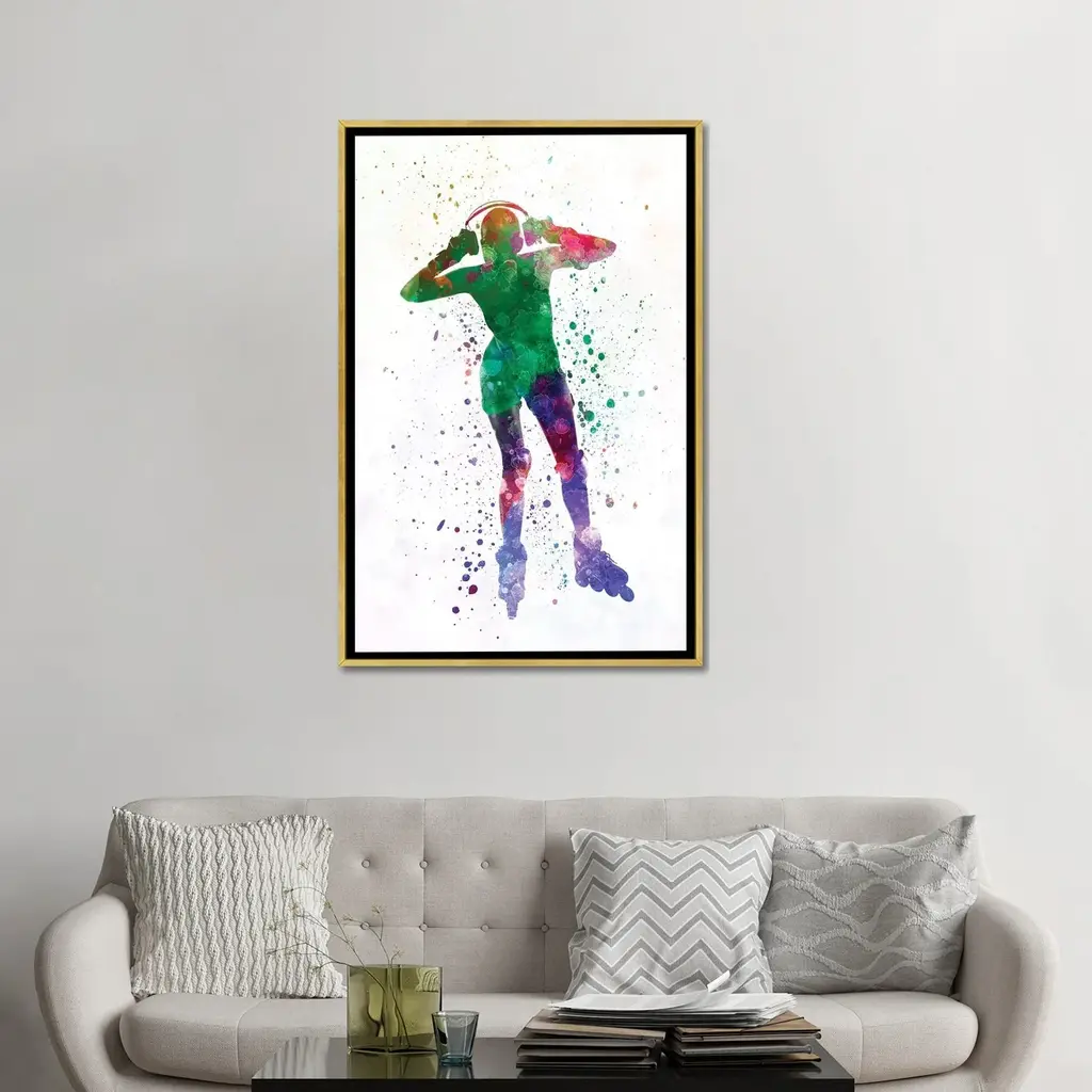 Icanvas "Woman In Roller Skates Iin Watercolor Iv" By Paul Rommer Framed Canvas Print - Gold - 48x32