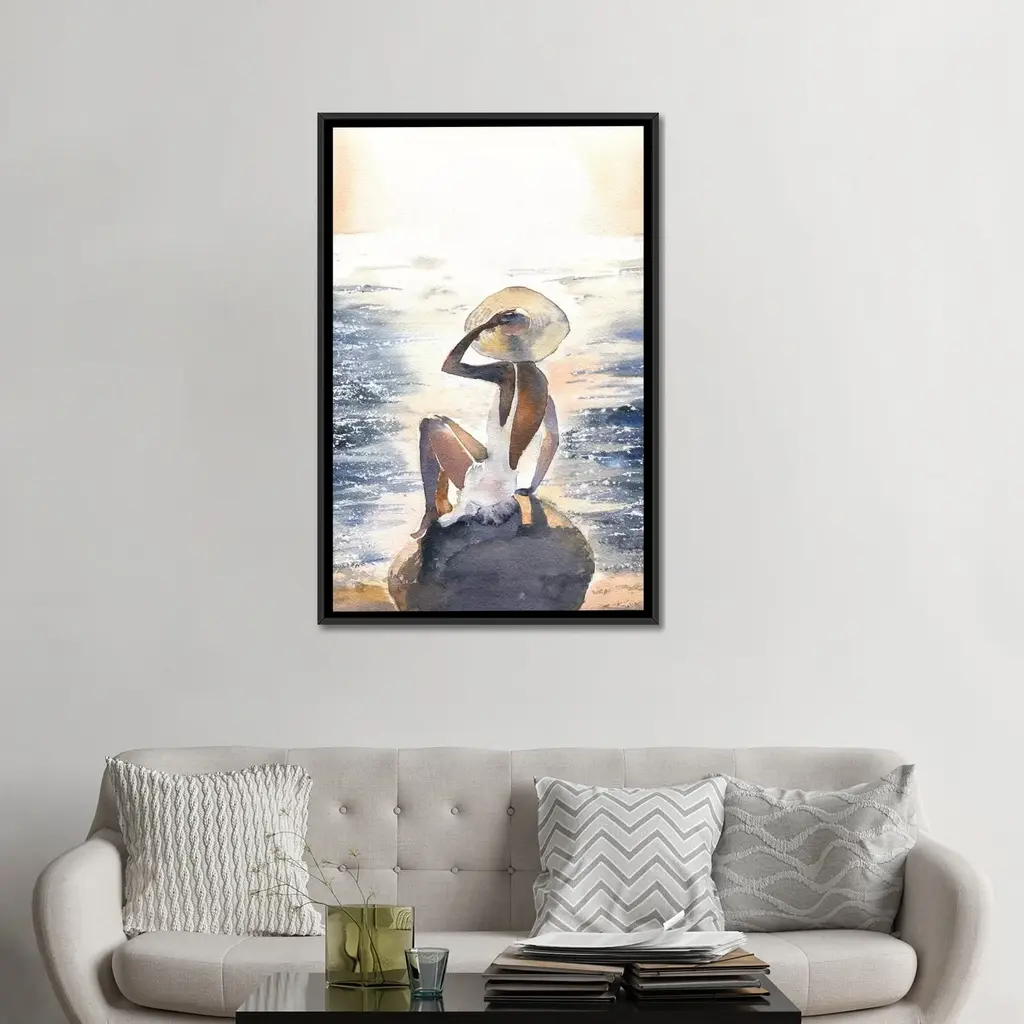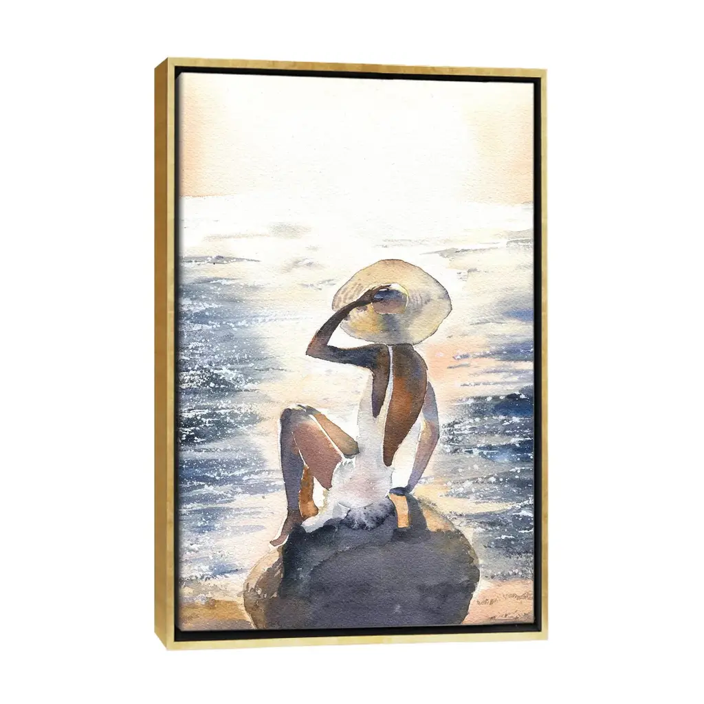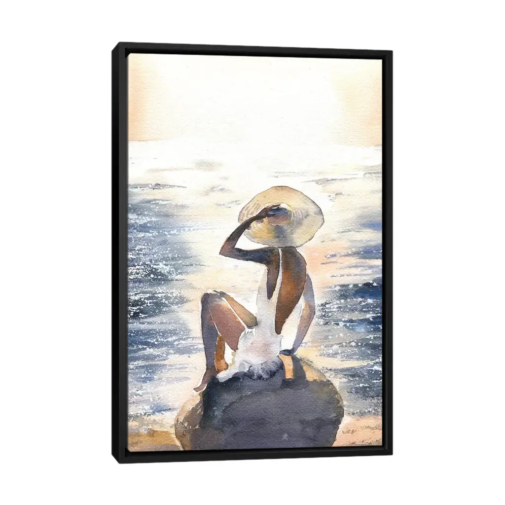 Icanvas "Woman On A Rock" By Marina Ignatova Framed Canvas Print - Black - 48x32