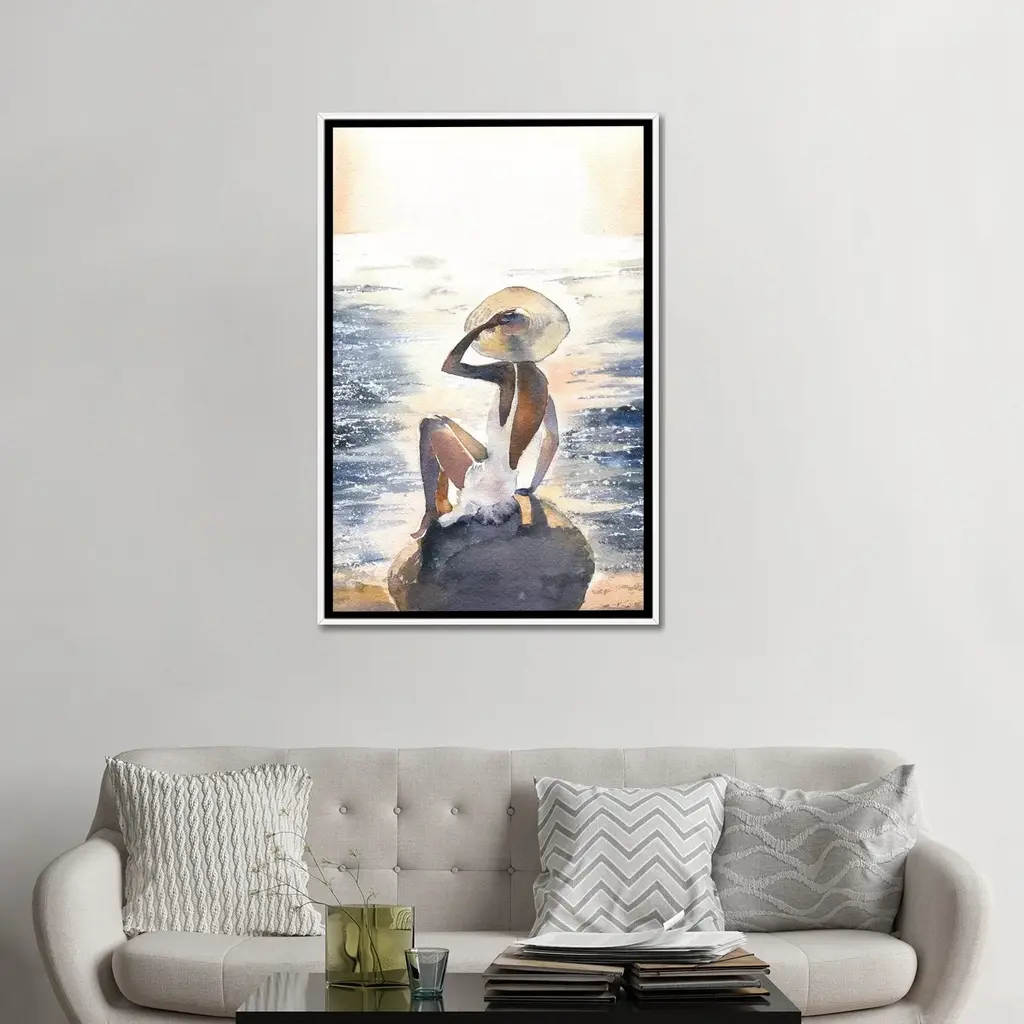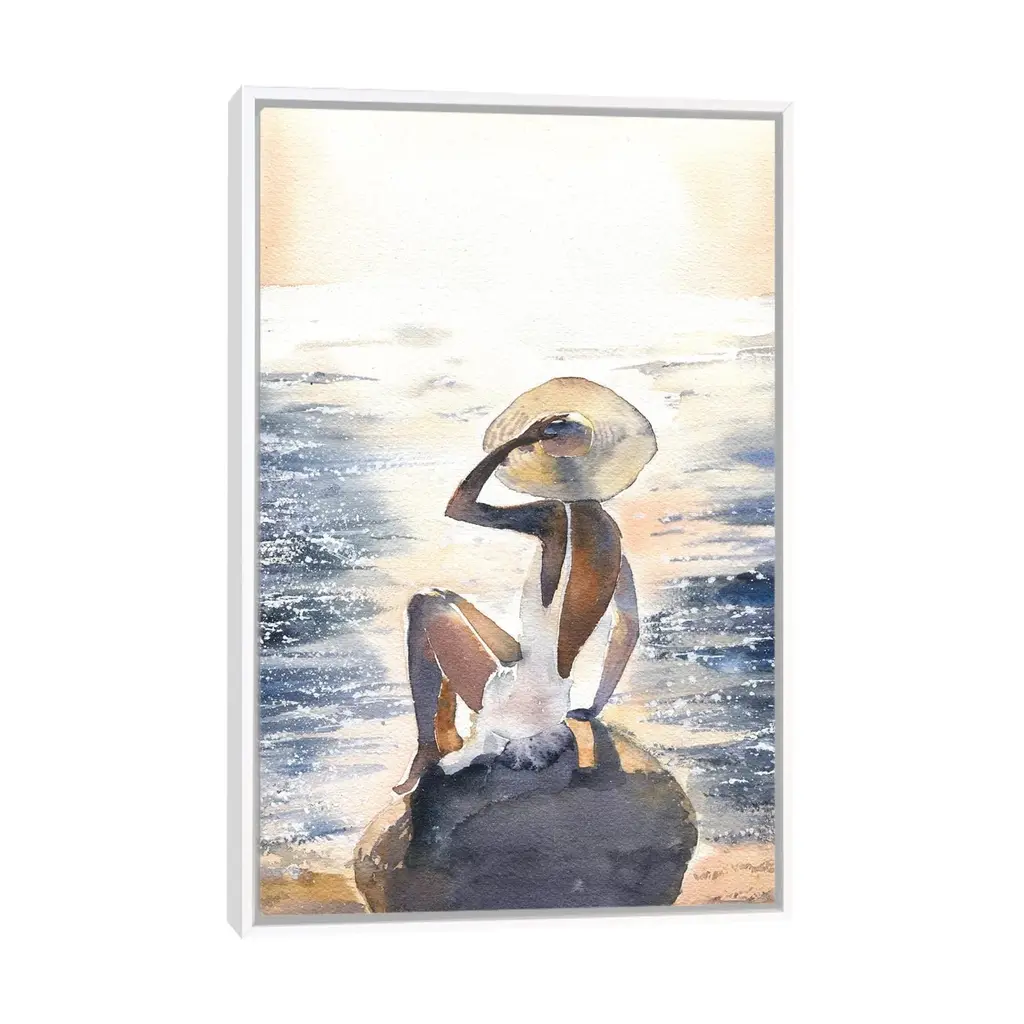 Icanvas "Woman On A Rock" By Marina Ignatova Framed Canvas Print - White - 26x18