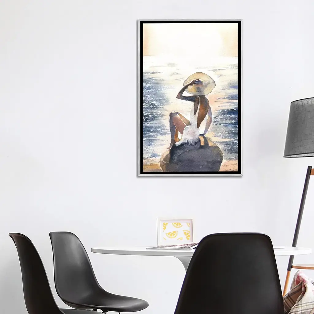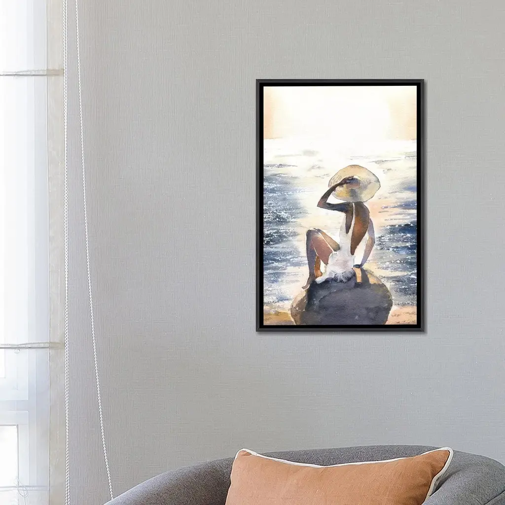 Icanvas "Woman On A Rock" By Marina Ignatova Framed - Ebony - 40x26