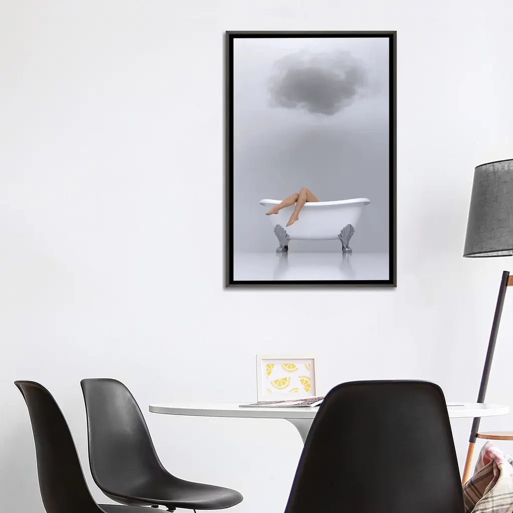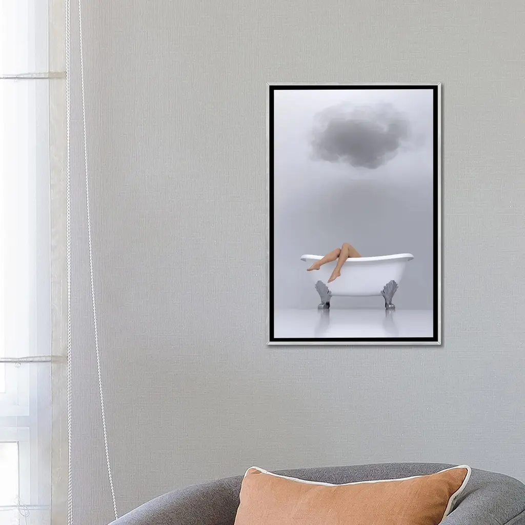 Icanvas "Woman Relaxing In The Bath" By Mike Kiev Framed - Charcoal - 26x18
