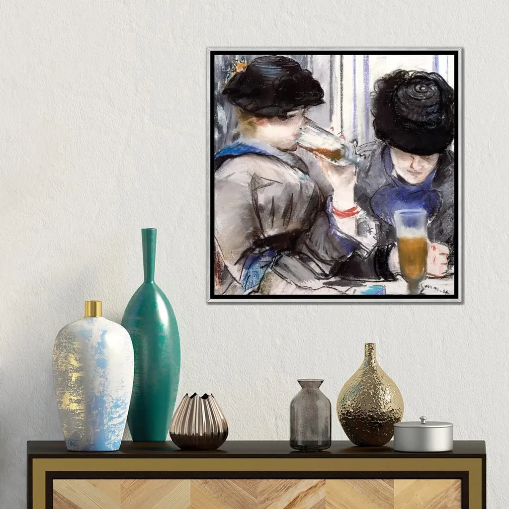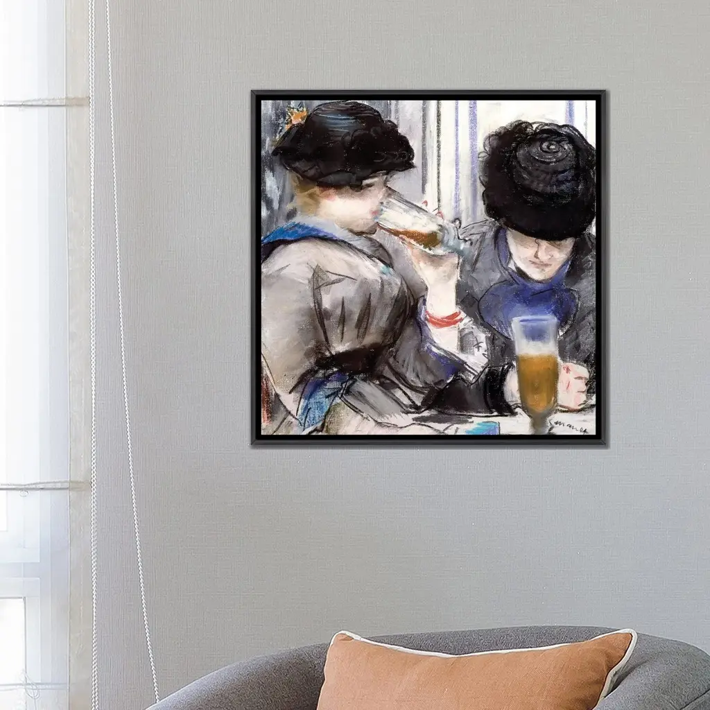 Icanvas "Women Drinking Beer, 1878" By Edouard Manet Framed - 26x26 - Charcoal