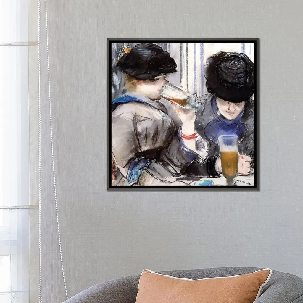 Icanvas "Women Drinking Beer, 1878" By Edouard Manet Framed - 37x37 - Charcoal