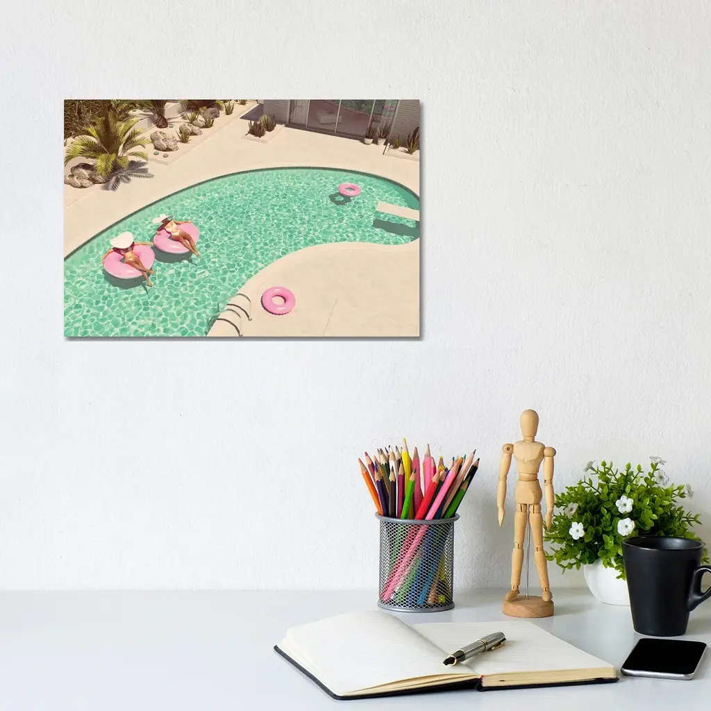 Icanvas "Women Swimming On Float In A Pool. 3D Rendering" By 2Mmedia Canvas Print - 26x40x1.5