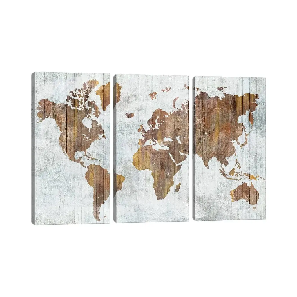 Icanvas "World Map Ii " By Isabelle Z 3-Piece Canvas Wall Art Set - 40x60x1.5
