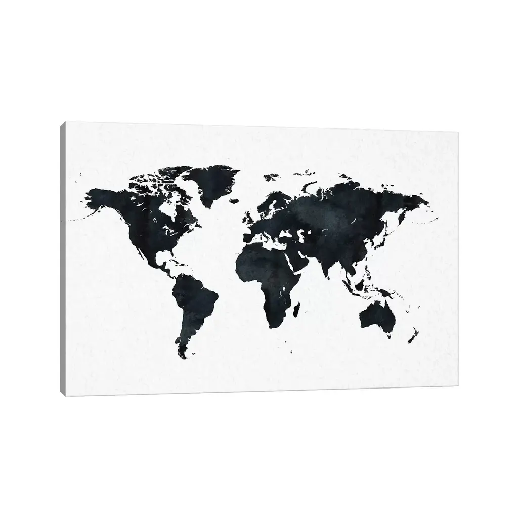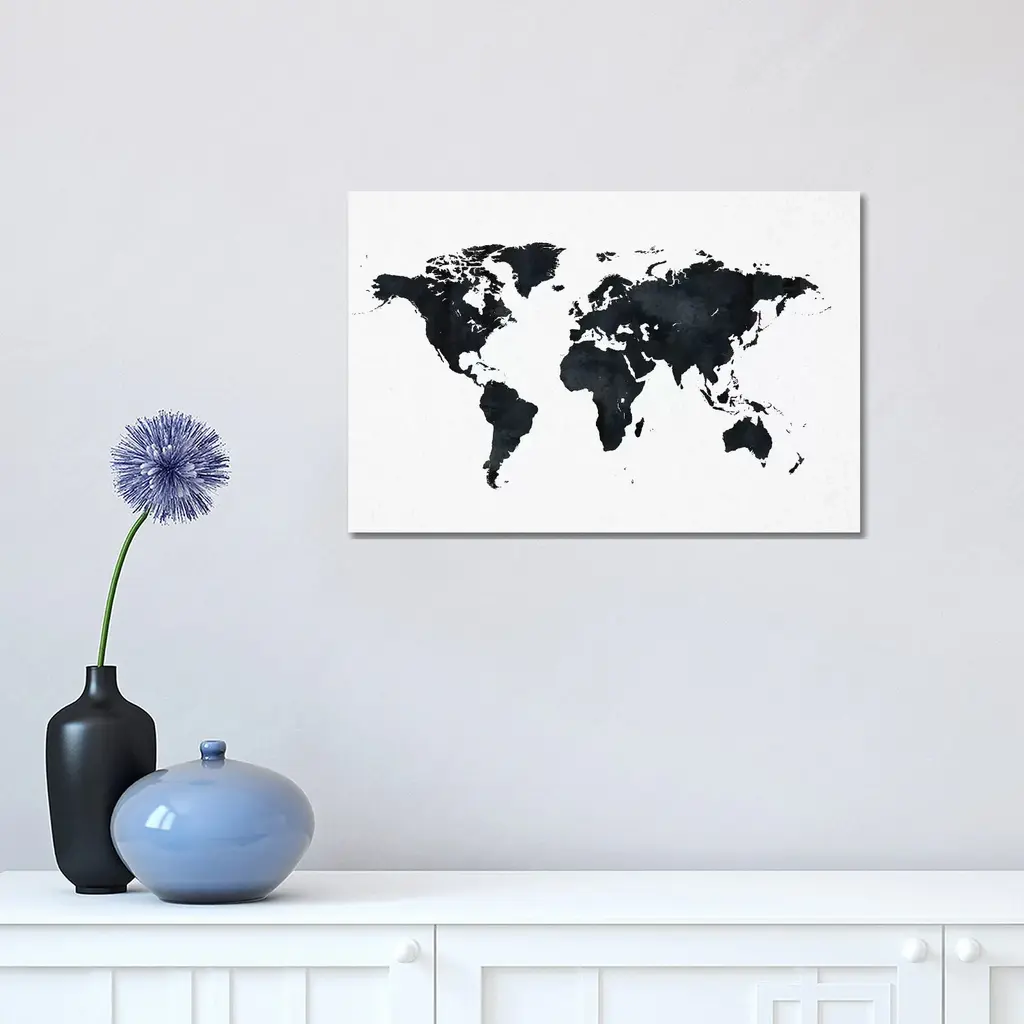 Icanvas "World Map In Black And White" By Nature Magick Canvas Print - 8X12x0.75