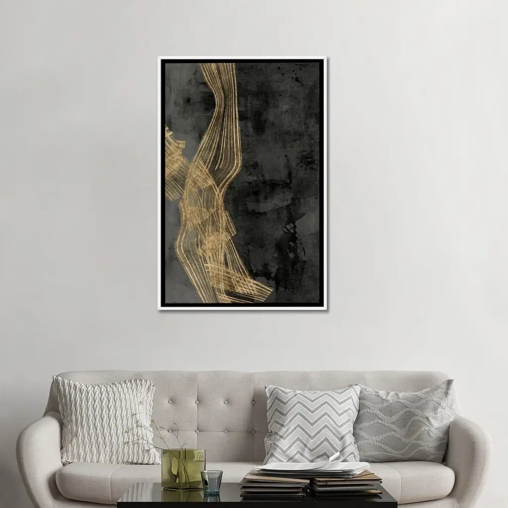 Icanvas "Woven Matrix Ii" By Jennifer Goldberger Framed Canvas Print - Gold - 48x32